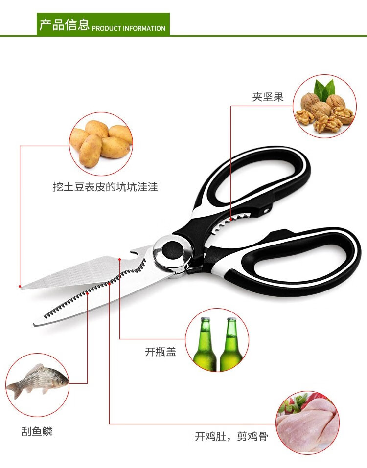 Chuangweiyue Ciseaux de ménage en acier inoxydable Ciseaux de cuisine multifonctionnels Ciseaux puissants en os de poulet Grands ciseaux Ciseaux alimentaires polyvalents Ciseaux à désosser Ciseaux de cuisine