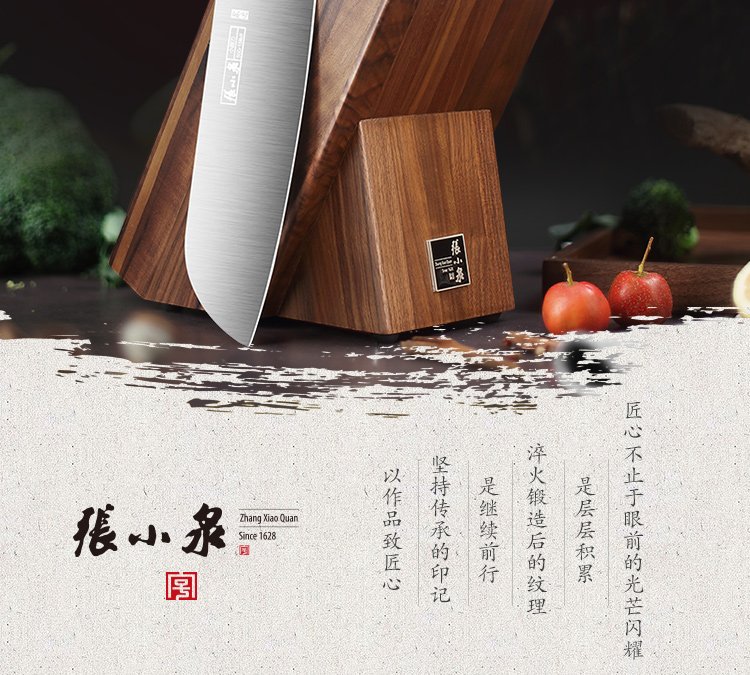 张小泉 淳木六件刀具套装 套刀 菜刀斩骨刀多用刀水果刀磨刀器刀具全套D31090100