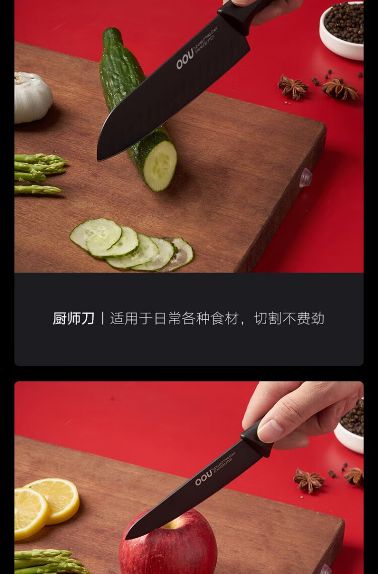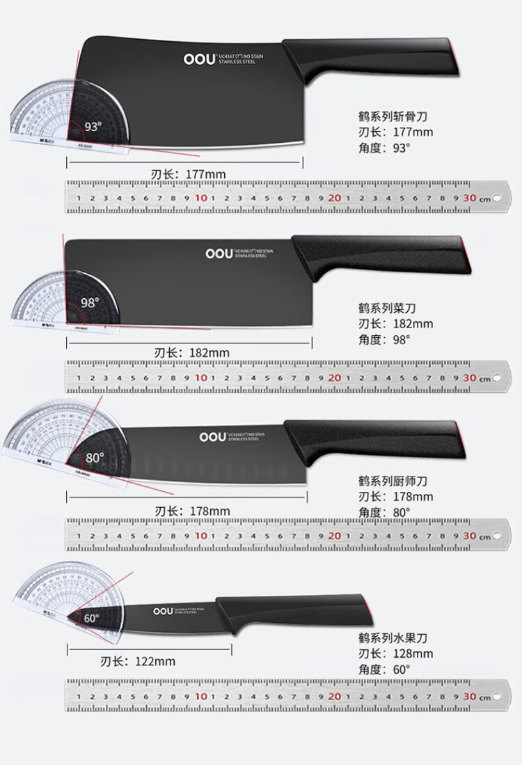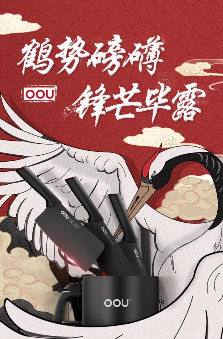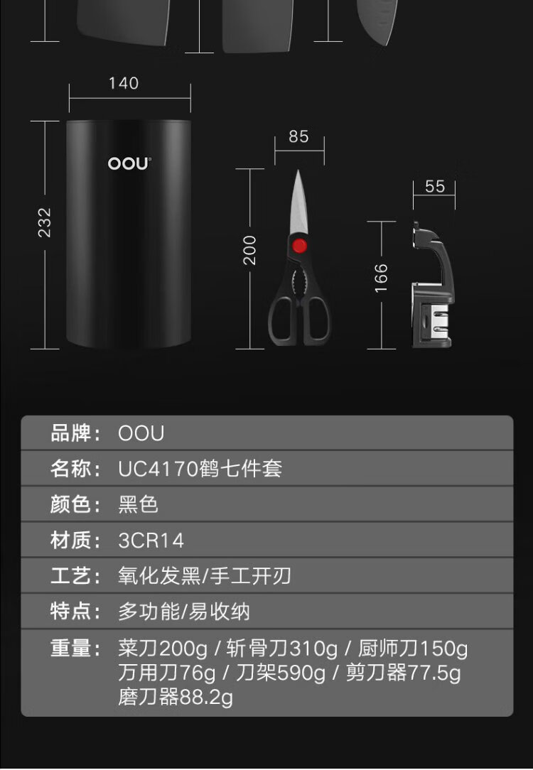 OOU household knife set kitchen full set of vegetable knives, scissors, fruit knives, high-quality steel set, anti-oxidant and anti-rust, Crane series, 7-piece set