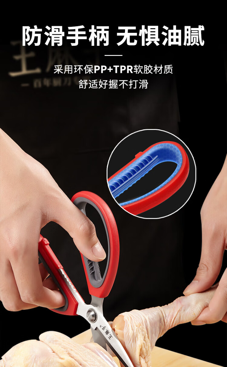 王麻子剪刀家用 不锈钢厨房剪纸手工裁缝剪子 食品级多功能尖头大剪刀