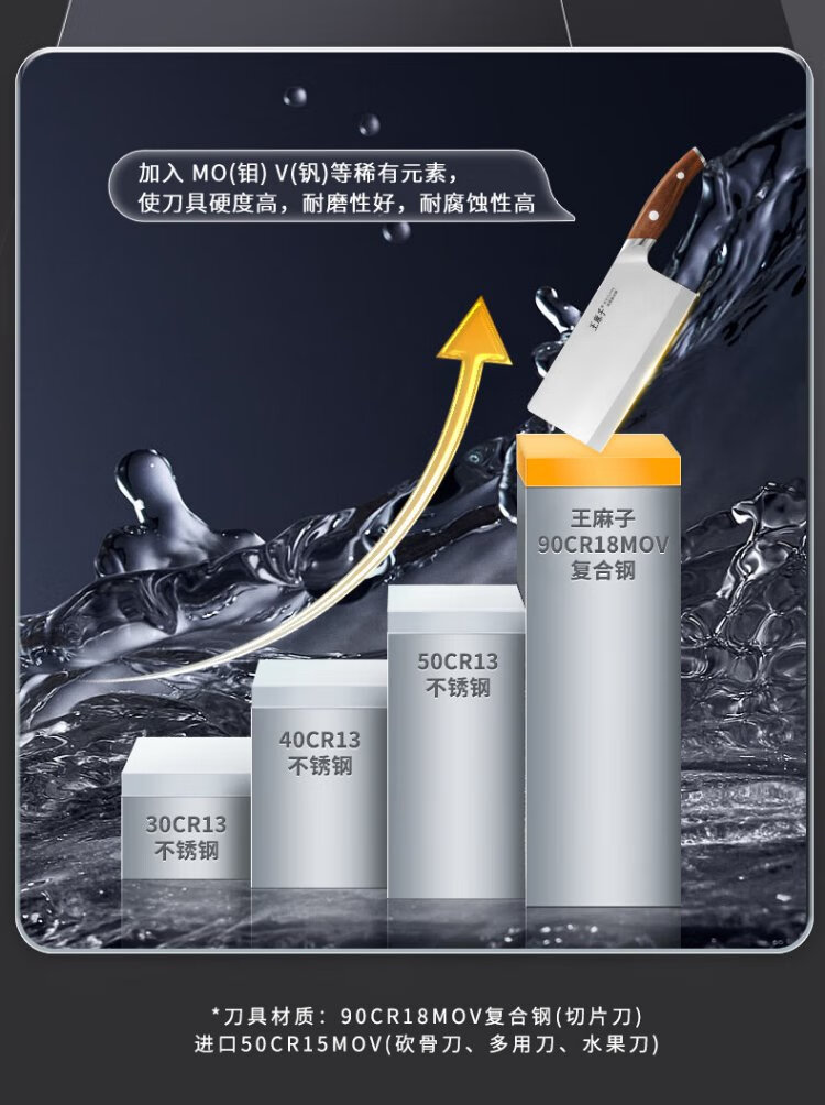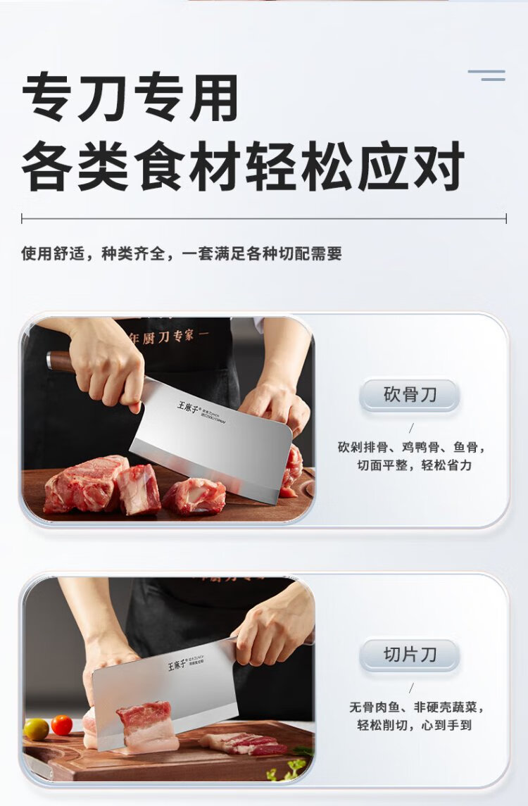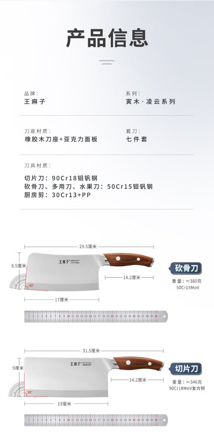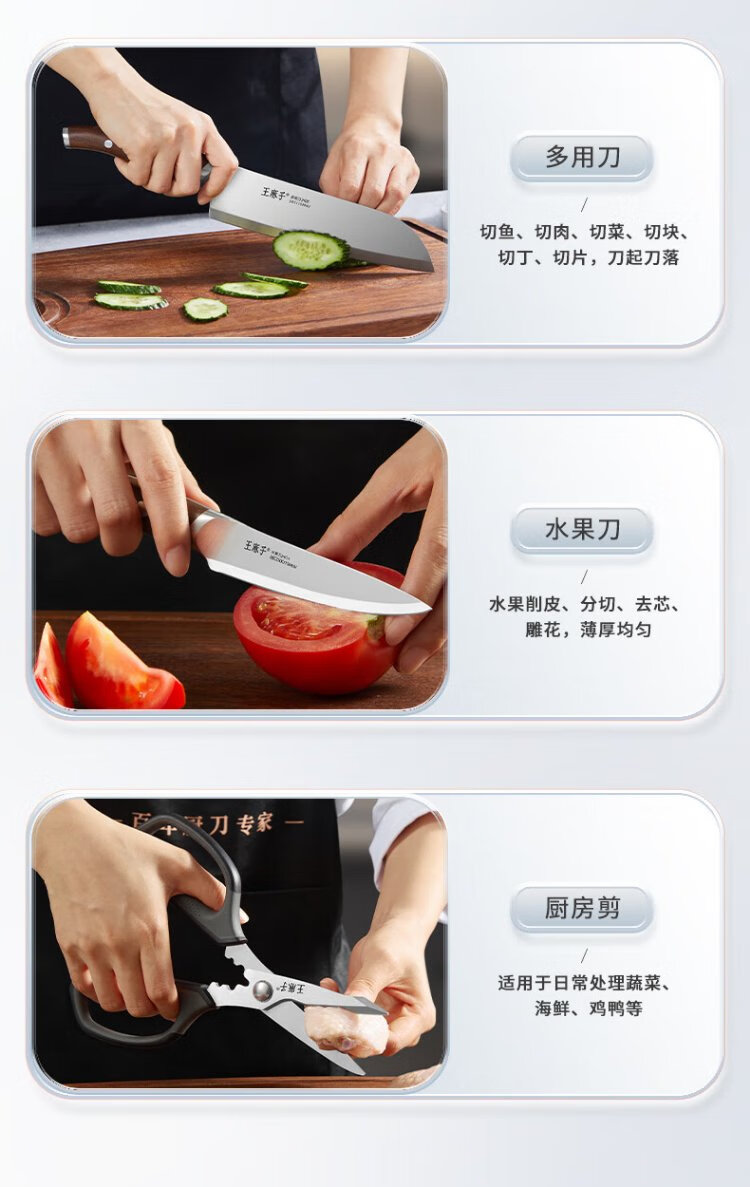 Wang Mazi household knife set, kitchen knife set, bone chopping knife, multi-purpose fruit knife, scissors, high-end 9 chrome kitchen knife set, 7-piece set