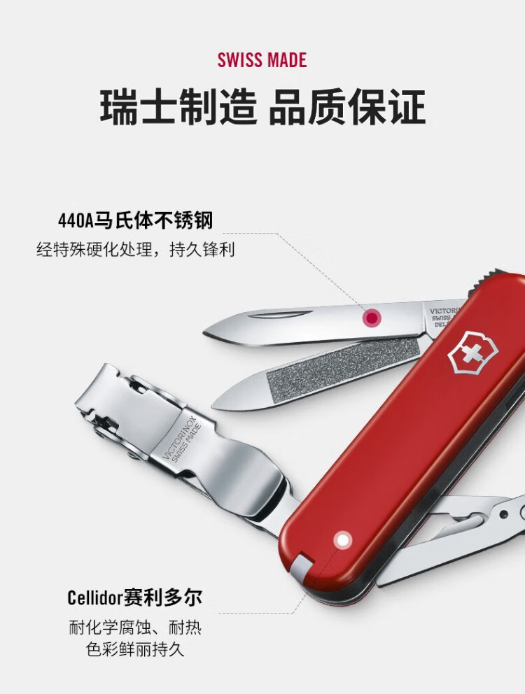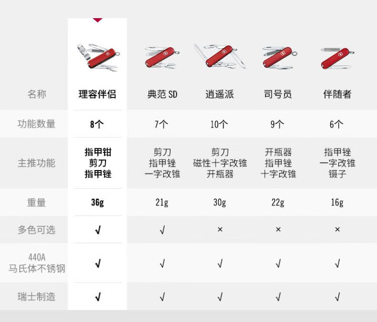维氏瑞士军刀理容伴侣8项功能水果刀多功能刀折叠刀具红色0.6463