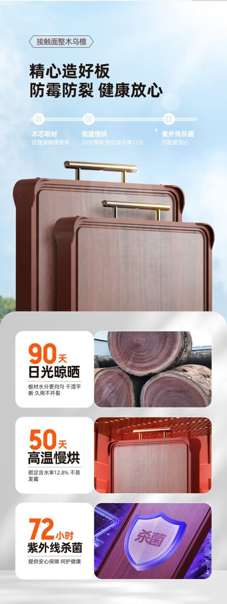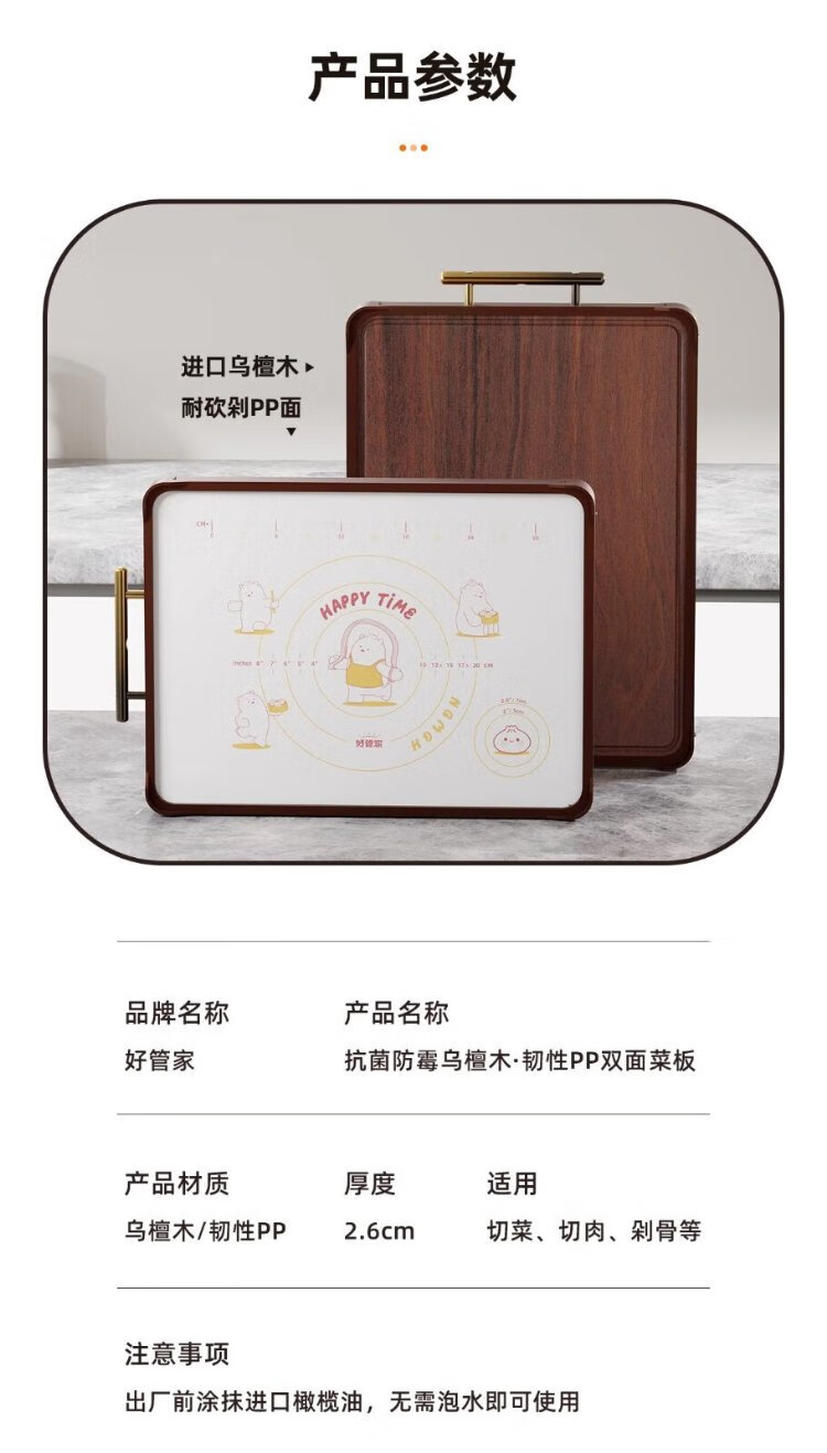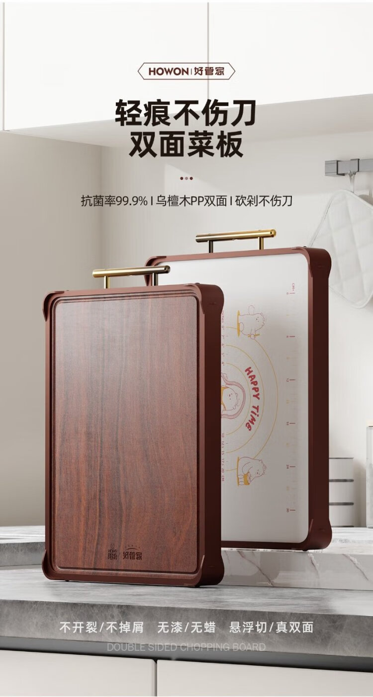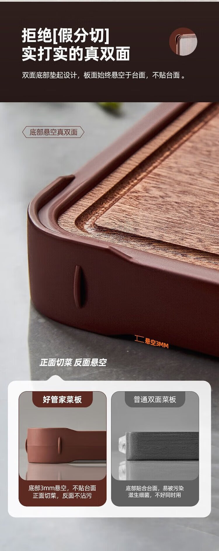 好管家菜板乌檀木+PP双面砧板切菜板抗菌防霉家用实木案板45*32