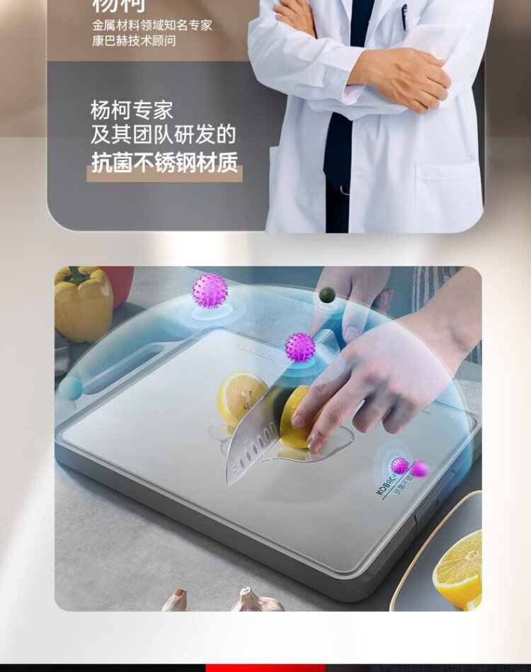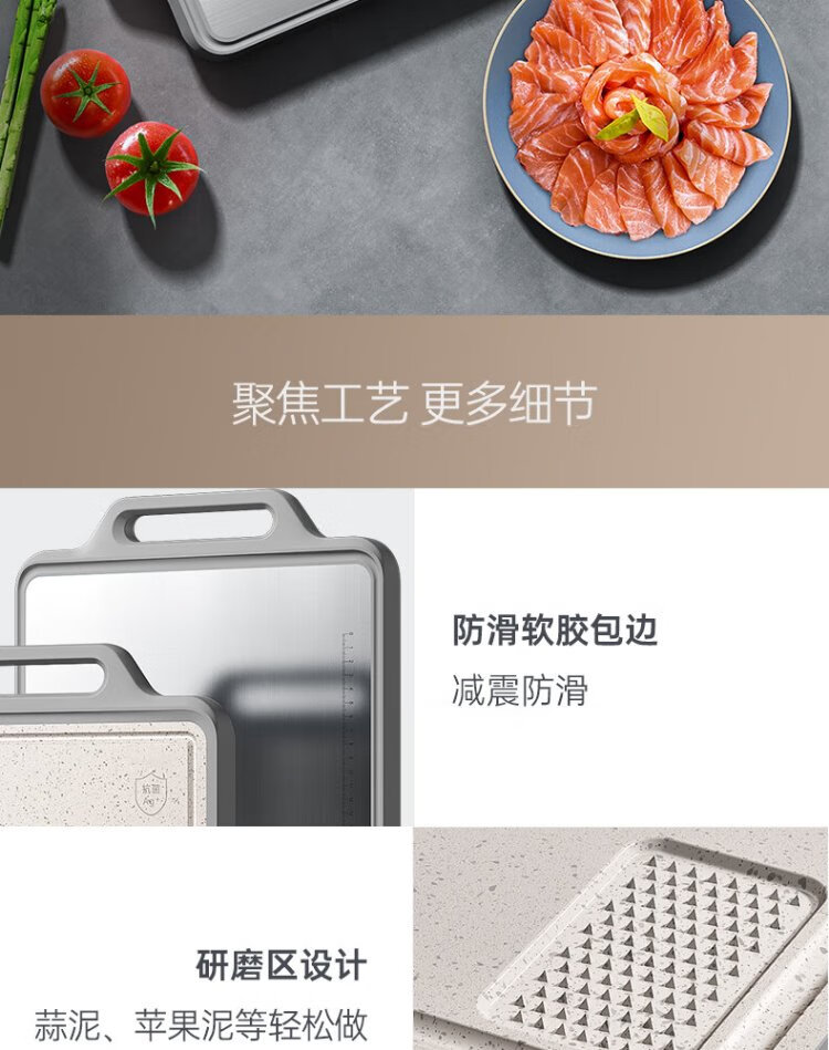 康巴赫(KBH)新款双面抗菌菜板 不锈钢砧板加厚案板不易发霉家用切菜板擀面板