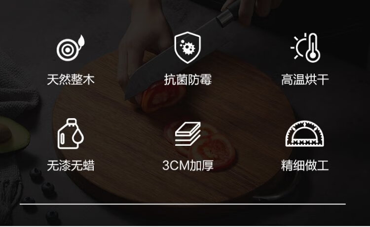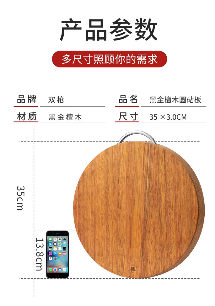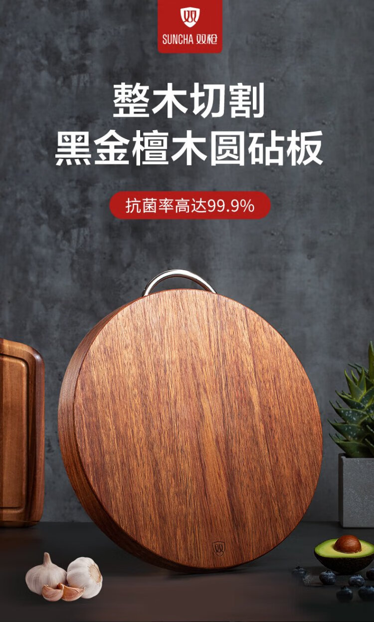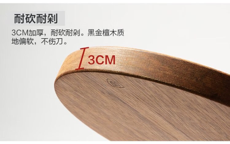 双枪黑金檀木整木切菜板加厚加大圆形砧板实木家用案板面板菜墩35*3