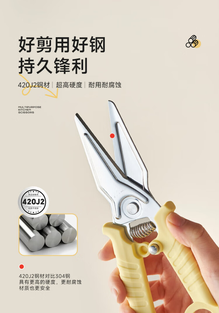 kims cook厨房剪刀不锈钢强力鸡骨剪多功能家用烤肉剪骨头专用剪刀