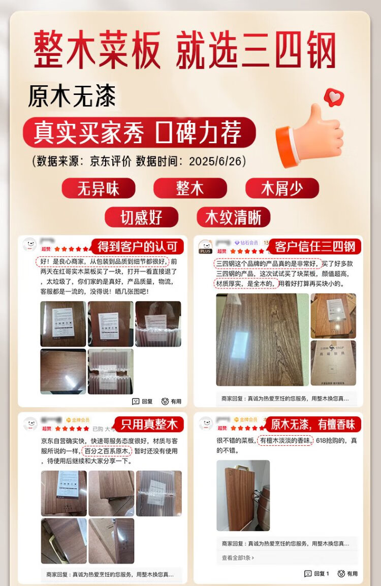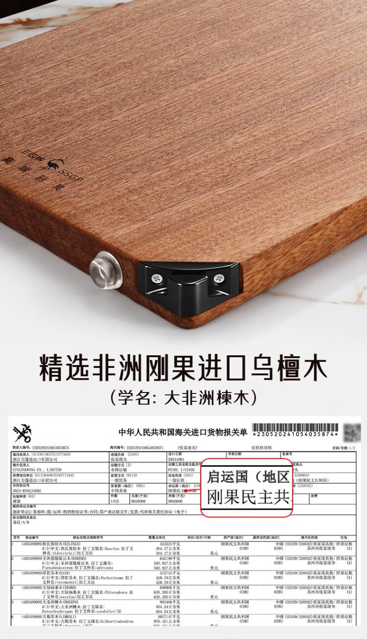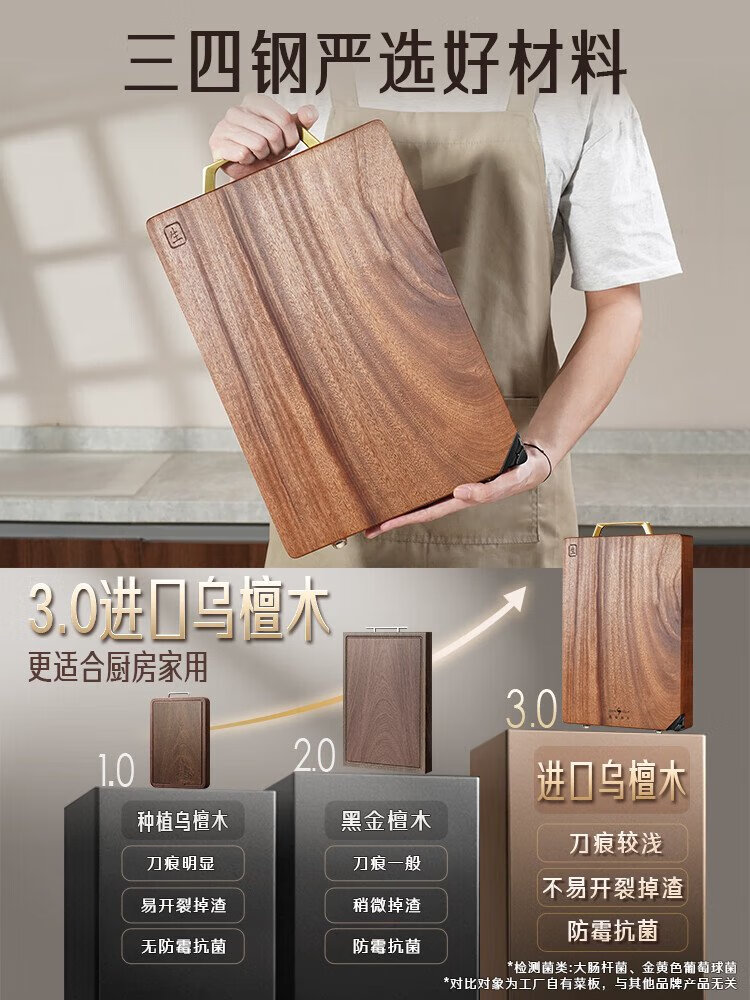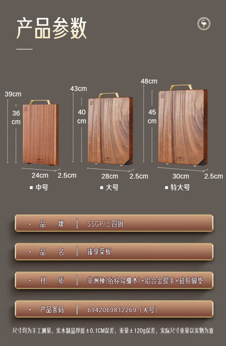 Sansi Steel solid wood solid wood imported ebony cutting board antibacterial and mildew-proof household food grade cutting board 38641