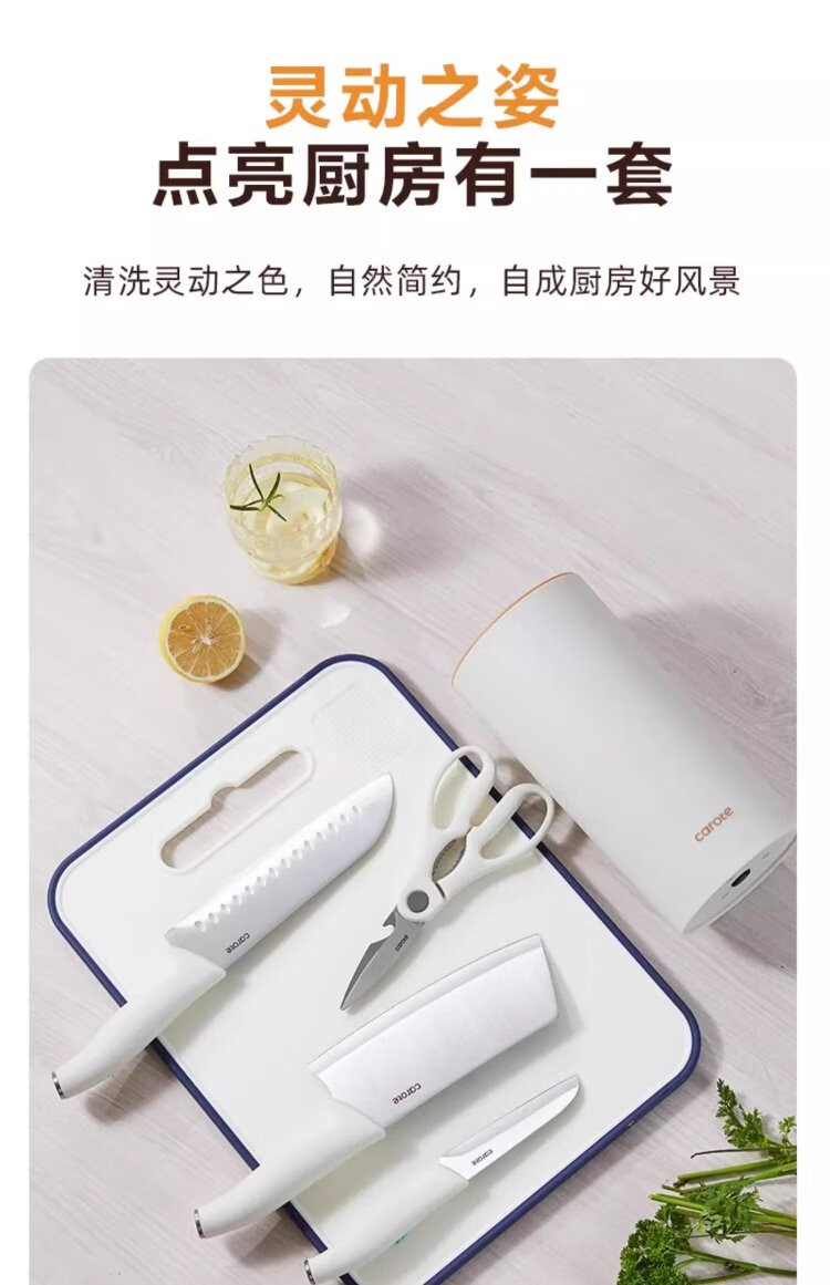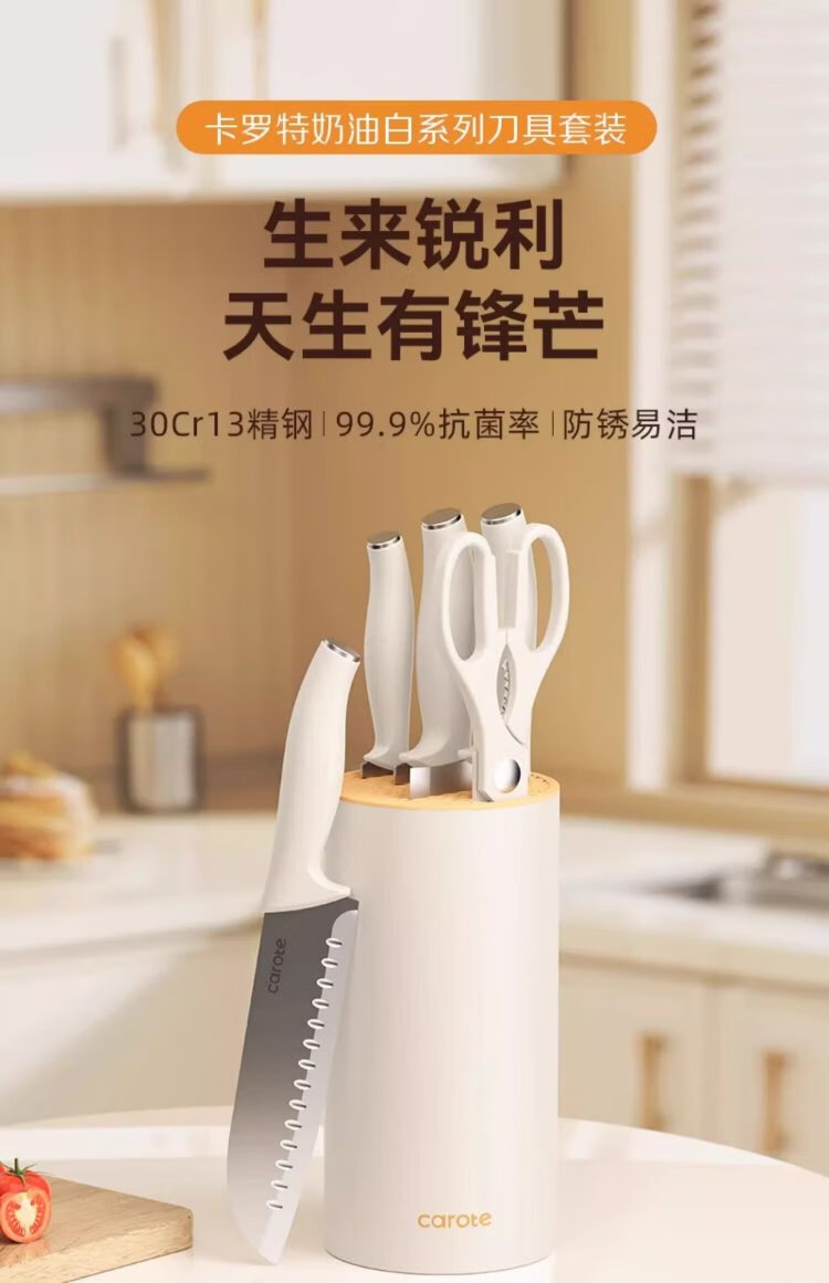 卡罗特抗菌刀具套装家用女士菜刀切片刀切菜刀切肉刀水果刀厨房五件套