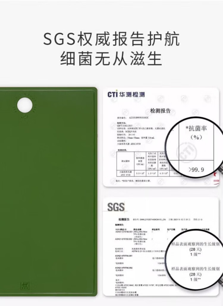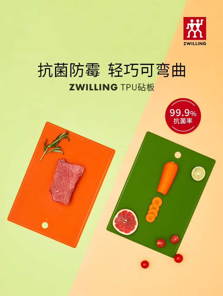 ZWILLING chopping board, antibacterial and mildew-proof TPU cutting board, household double-sided fruit and food supplement board, 99.9% antibacterial rate