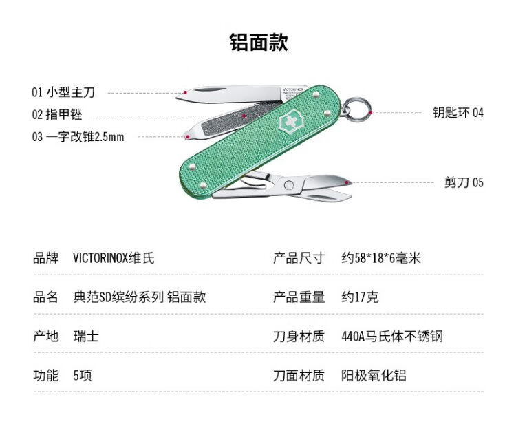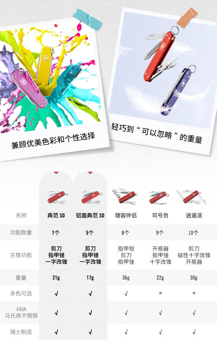 维氏瑞士军刀典范7项多功能水果刀刀折叠刀时尚红0.6223.G