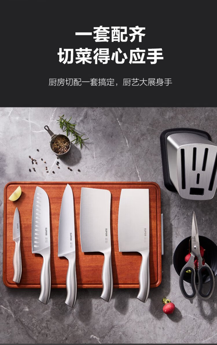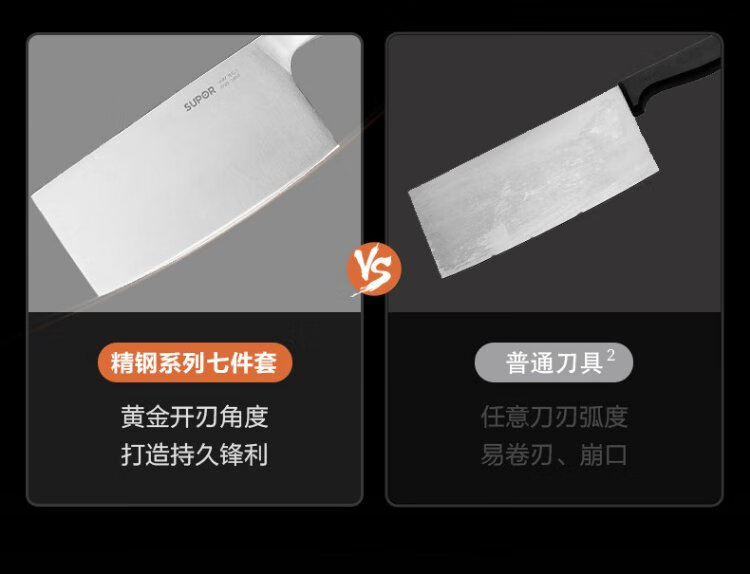苏泊尔SUPOR 刀具套装套刀菜刀斩骨刀多用刀水果刀剪刀7件套 TK1506E