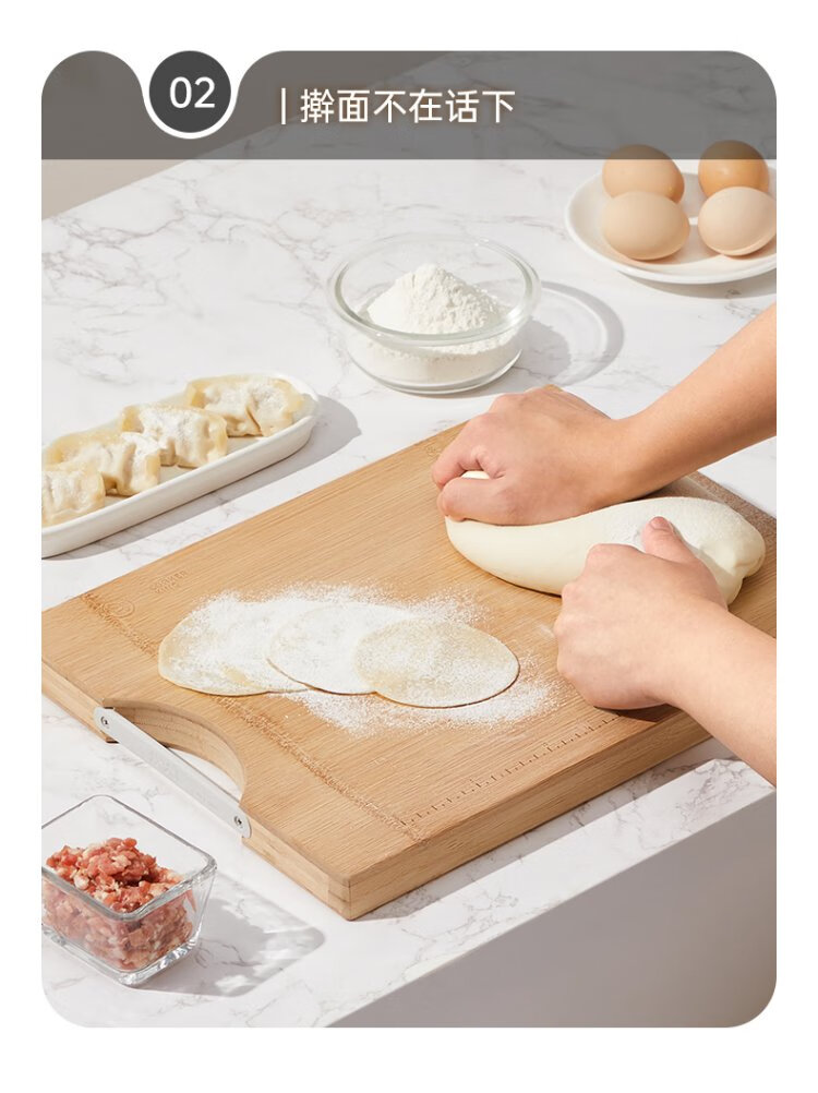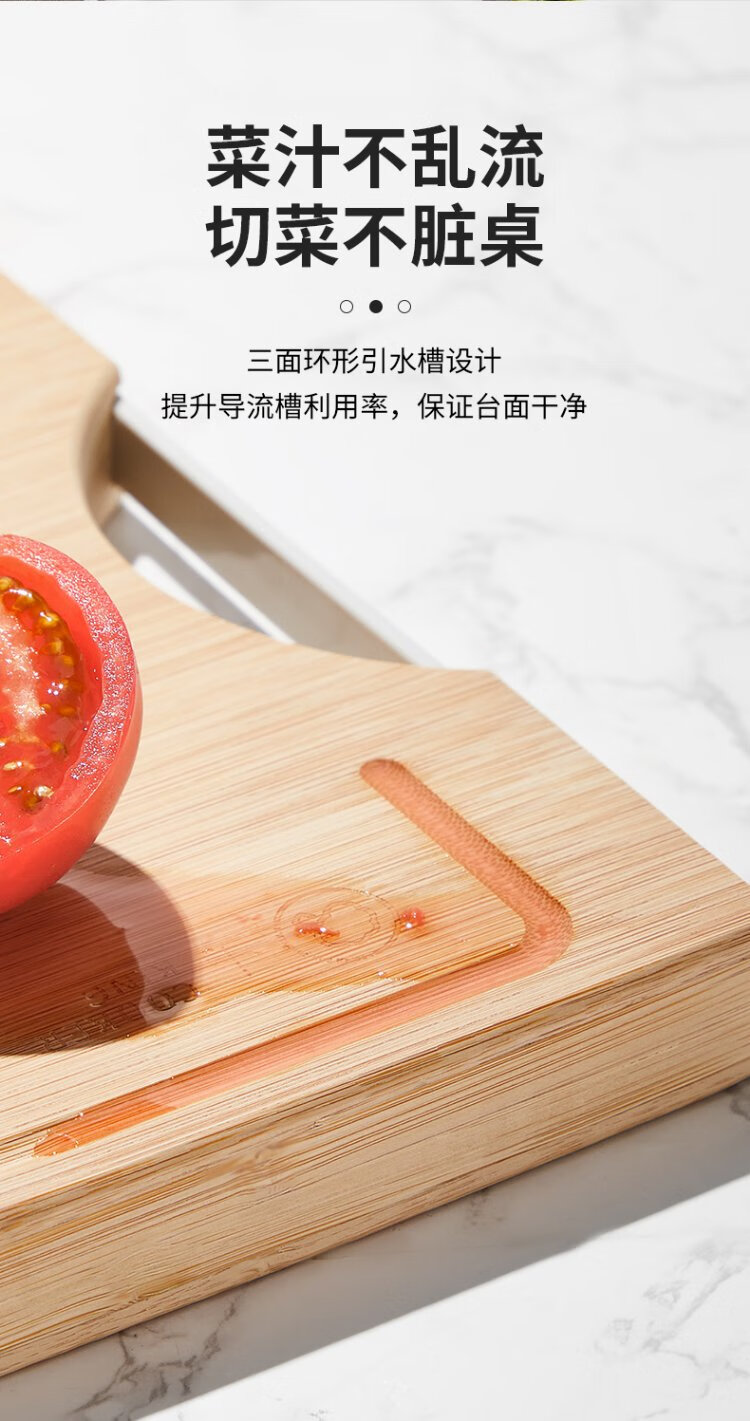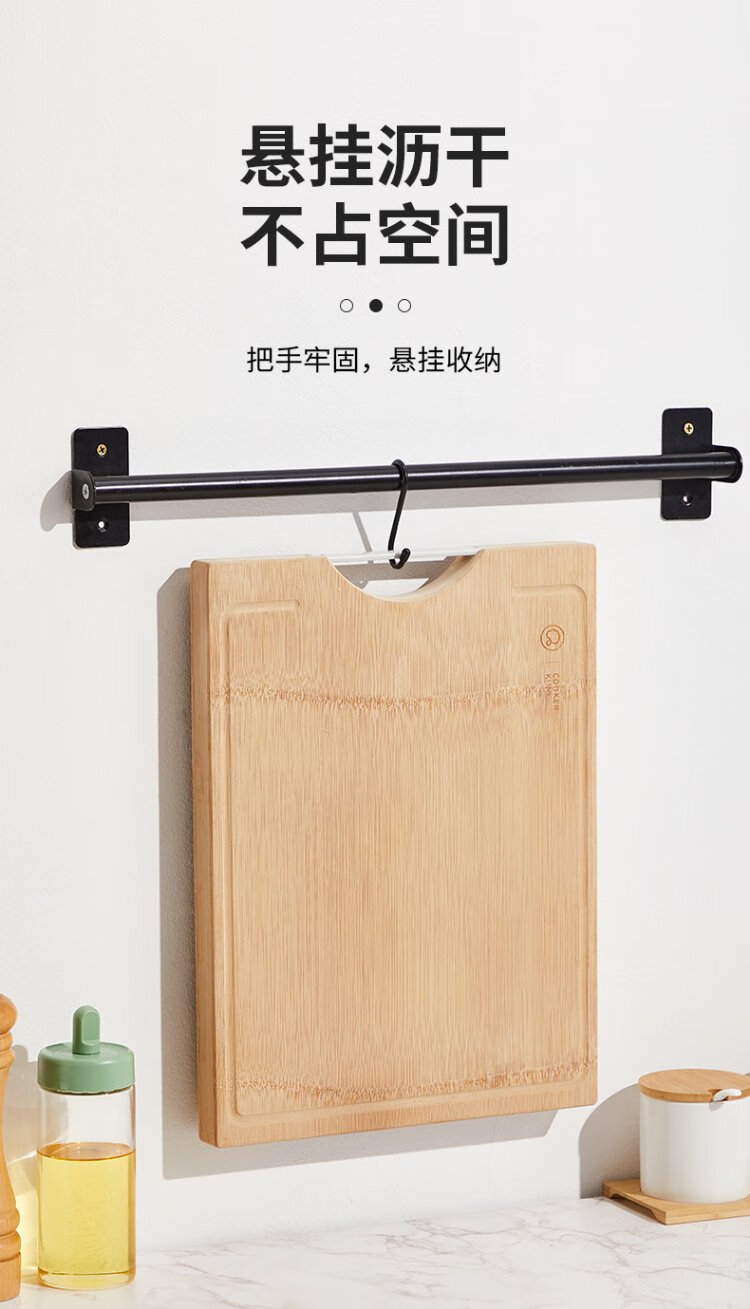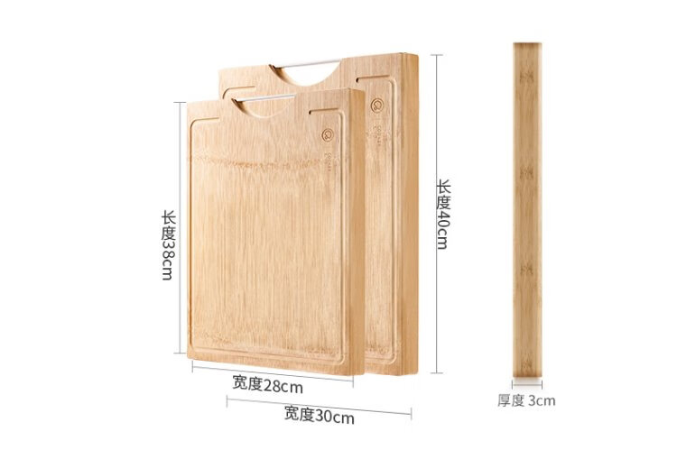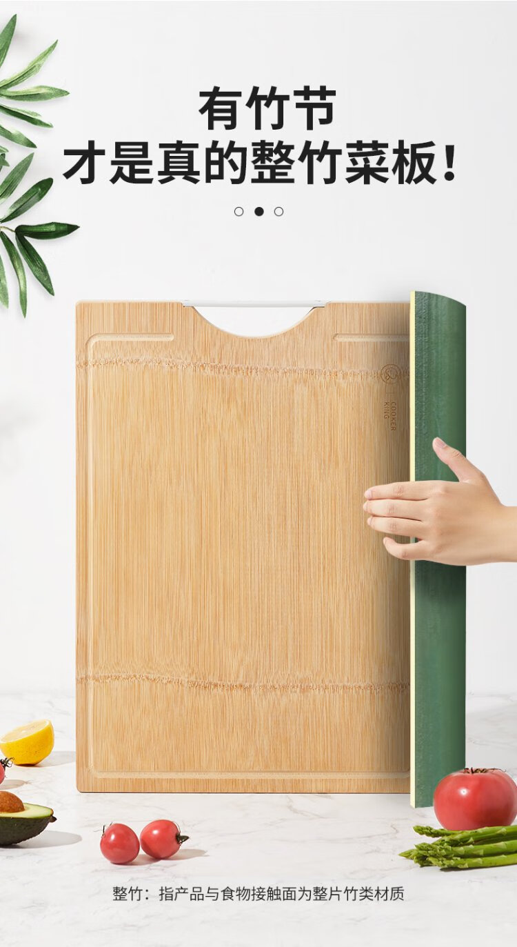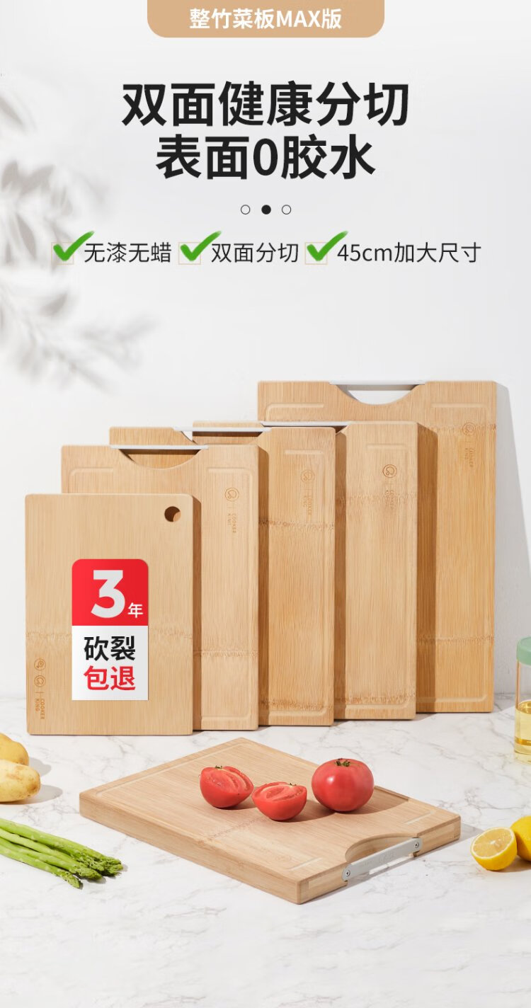 炊大皇 天然整竹菜板3cm加厚带刻度可悬挂家用案板砧板和面切菜板38*28