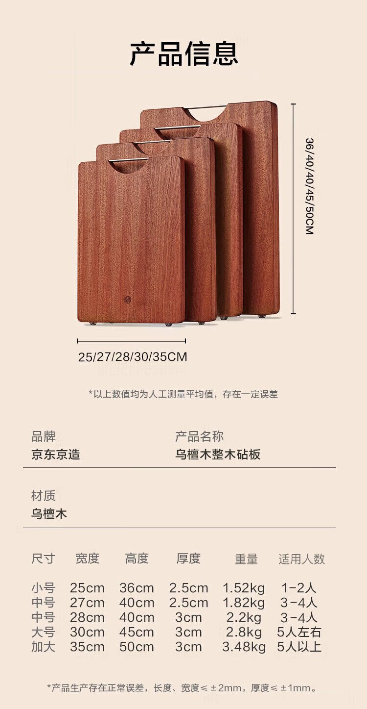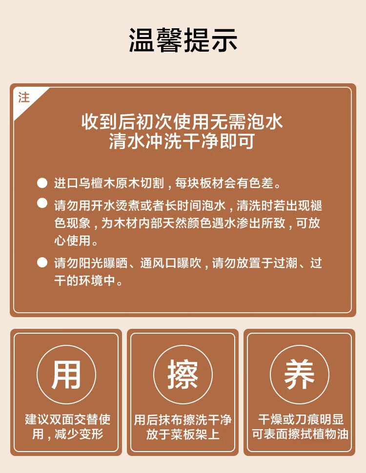 Made in Tokyo, cutting board, chopping board, household double-sided solid wood antibacterial, ebony solid wood, 40*27*2.5cm