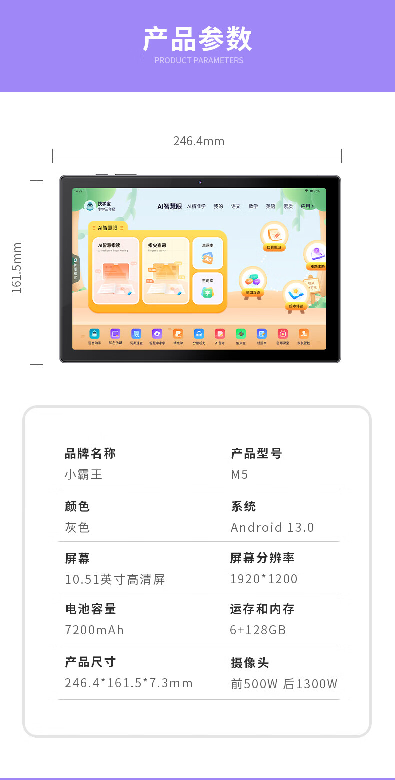 D2025 new M5 learning machine, general learning practice from first grade to high school, All intelligent primary school student tablet English textbook, synchronized English eye protection for all subjects, 2025 new model, 12G operation, synchronized learning for all subjects, 128GB