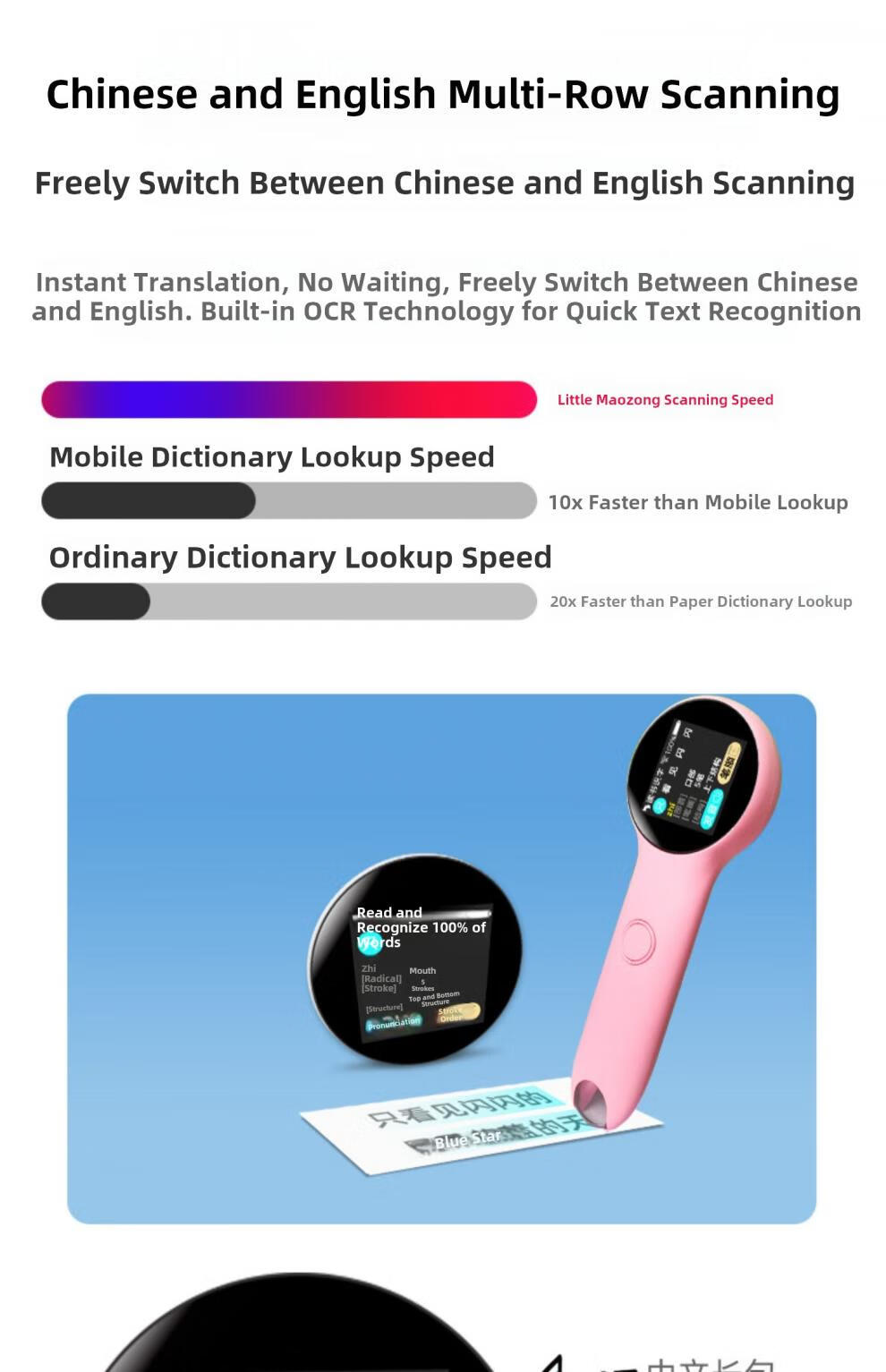 Hewu Xiaomao Lesestift, Pinyin-Lernmaschine für Alphabetisierung von Kindern, chinesische und englische Übersetzung, neutrale Kleinkinder, Grundschule, erste Klasse, weiße B-Version, kann alle Bücher scannen, Pinyin-Übersetzung, Sprachübersetzung, offizieller Standard