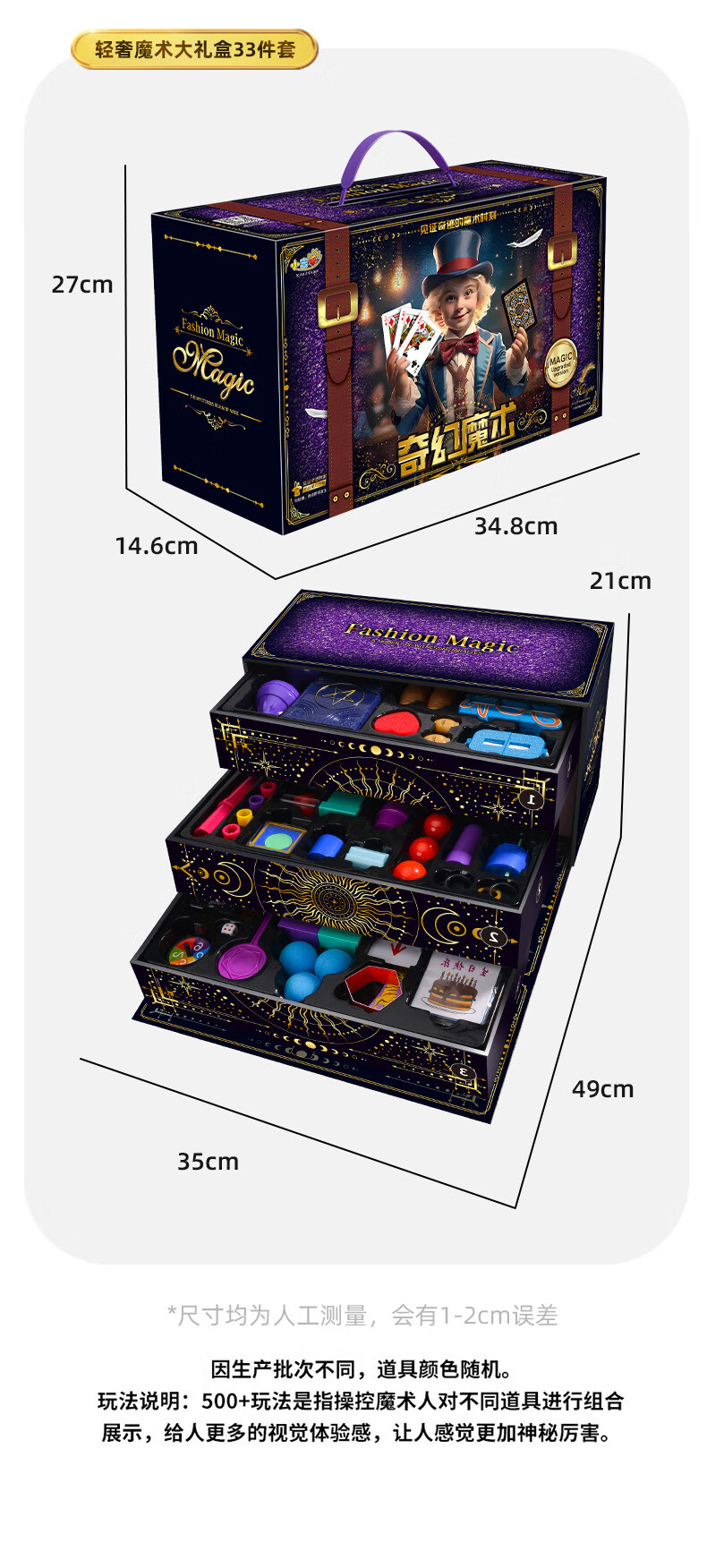 Lie Rui Coffret Cadeau d'accessoires Magiques pour Enfants Grande boîte Magique de Transformation scène de Gros Plan Jouets d'école élémentaire pour garçons et Filles Coffret Cadeau Extra Large de Luxe Magique 63 Accessoires