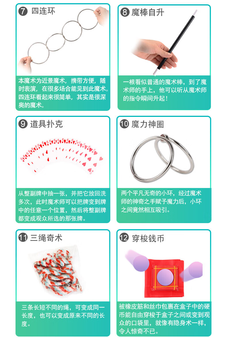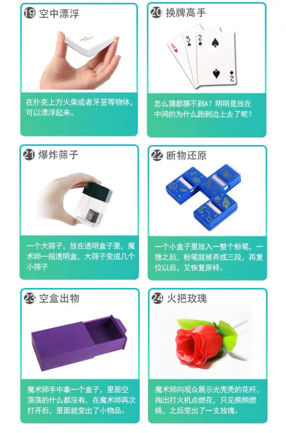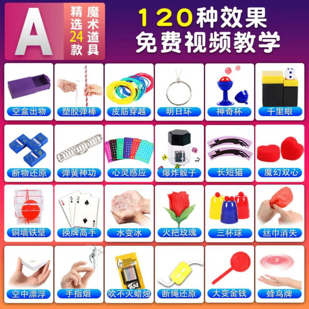 He Jiagong Ensemble de jouets magiques de qualité allemande pour débutants, baguette magique de scène en gros plan, cartes à jouer, jouets pour enfants, 24 types de magie (type A), coffret cadeau avec carte d'enseignement vidéo