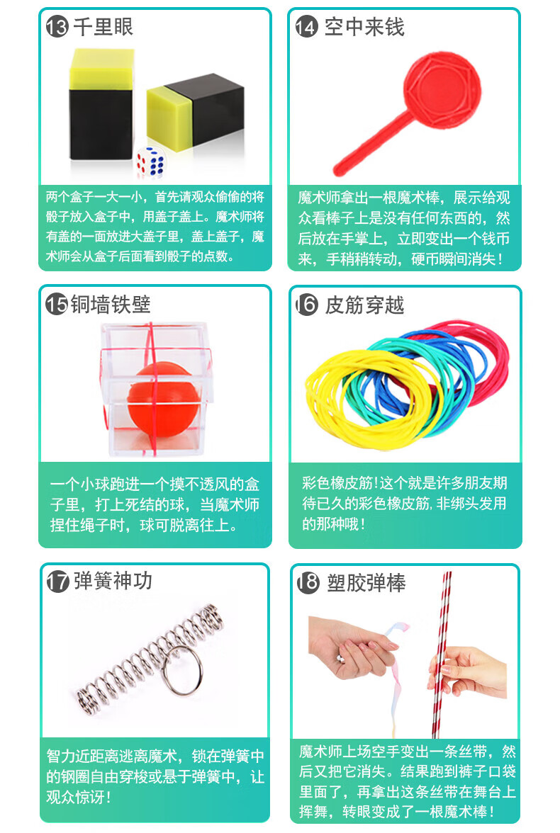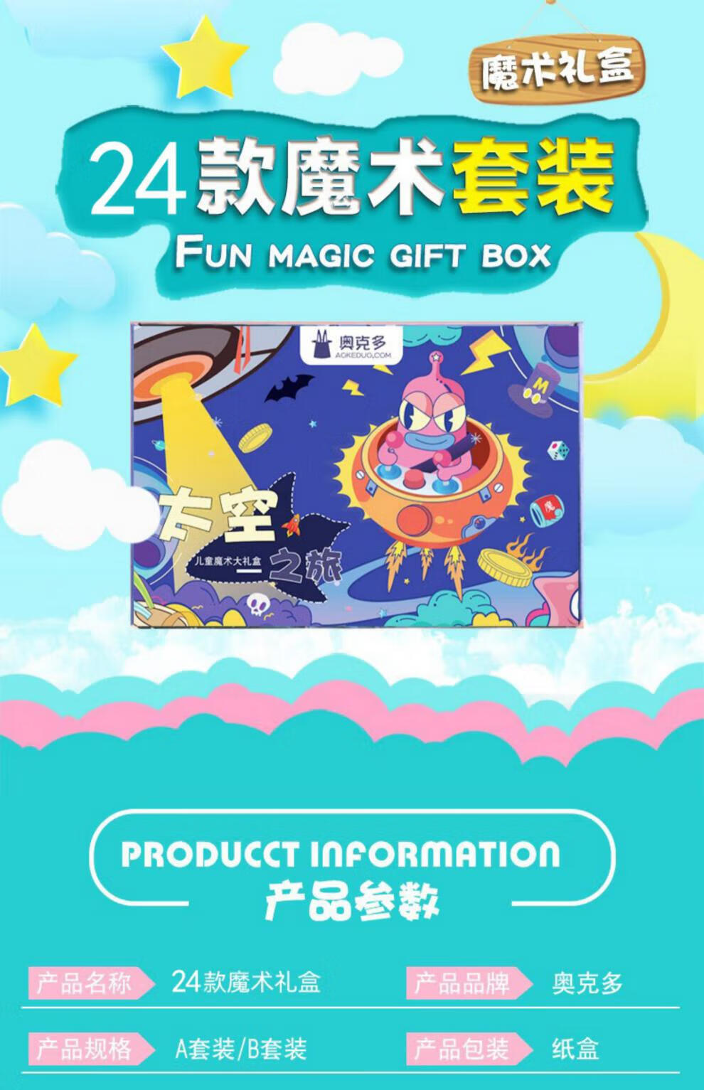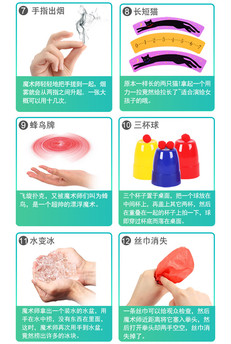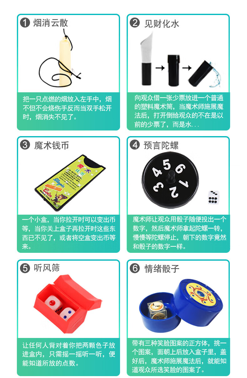 He Jiagong Ensemble de jouets magiques de qualité allemande pour débutants, baguette magique de scène en gros plan, cartes à jouer, jouets pour enfants, 24 types de magie (type A), coffret cadeau avec carte d'enseignement vidéo