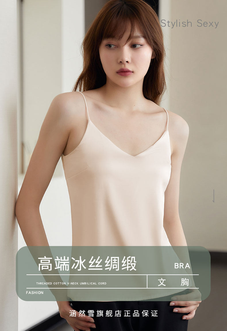 冰丝美背吊带背心带胸垫免穿文胸一体式内衣薄款夏季打底抹胸上衣