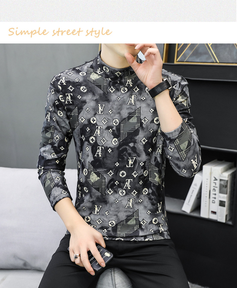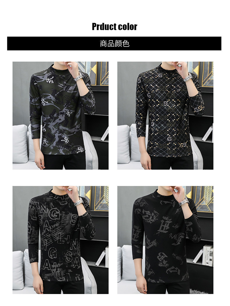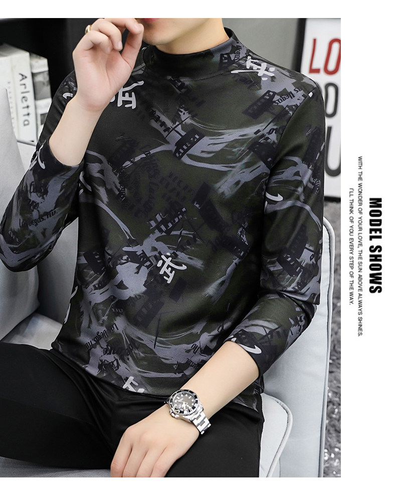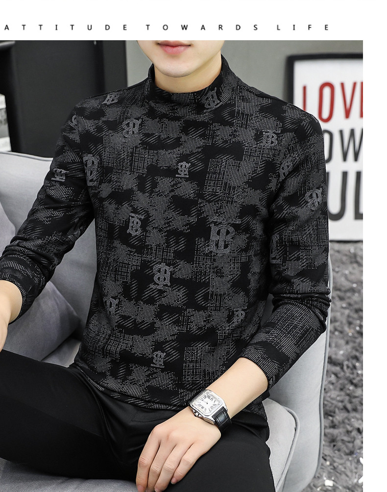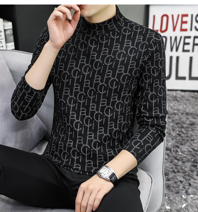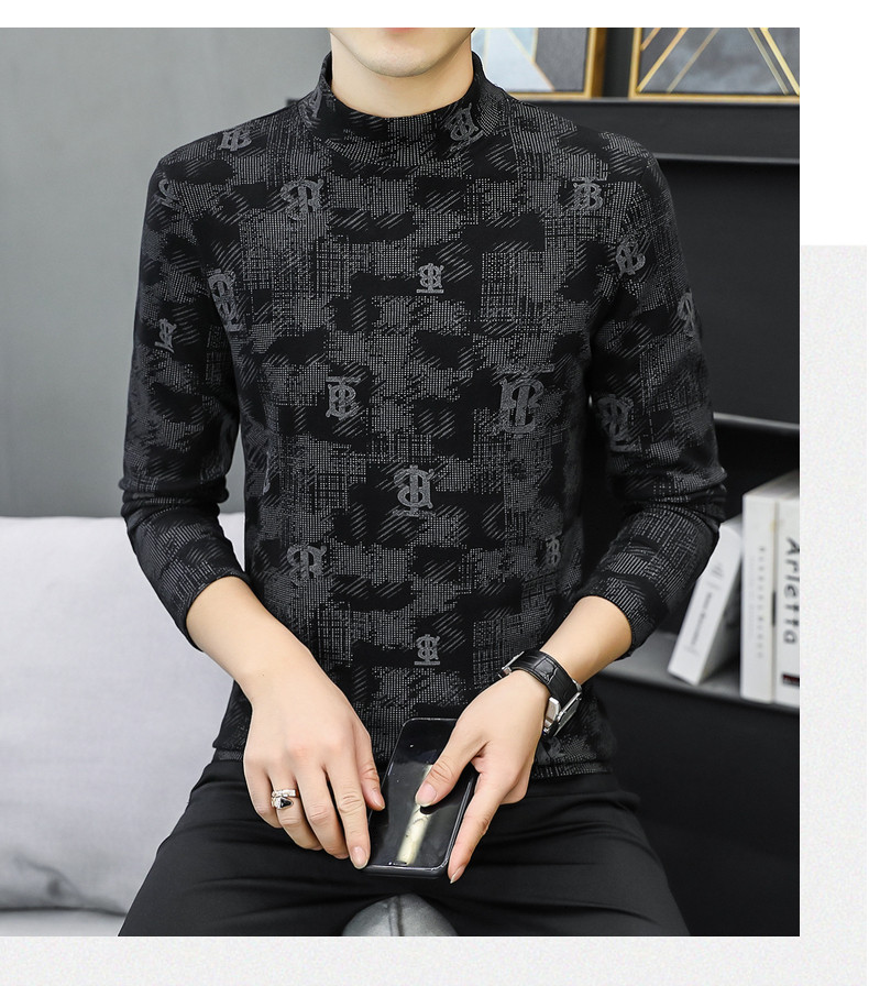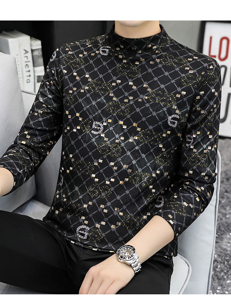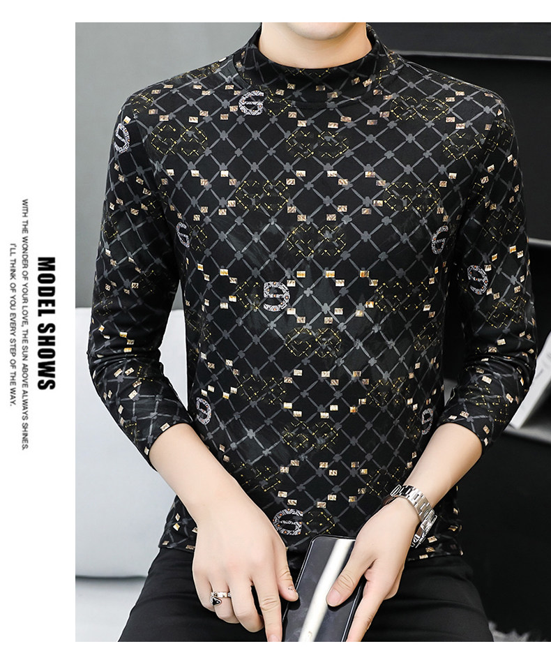 Long-Sleeve T-Shirt for Men, Trendy Ins Style, Inner Layer Autumn Clothing, Korean Version, German Velvet, Half-High Collar Top, Autumn Men's Base Shirt