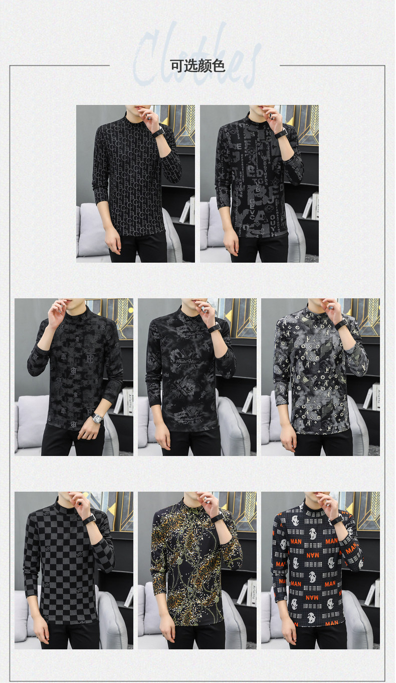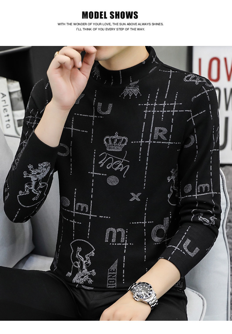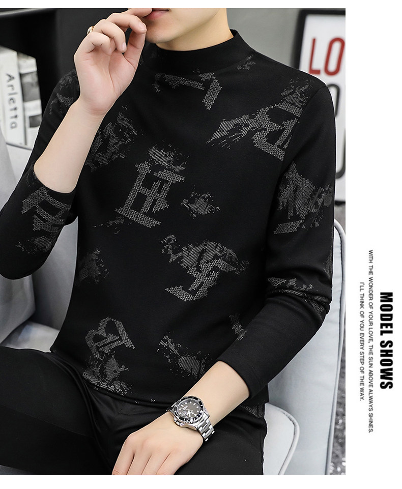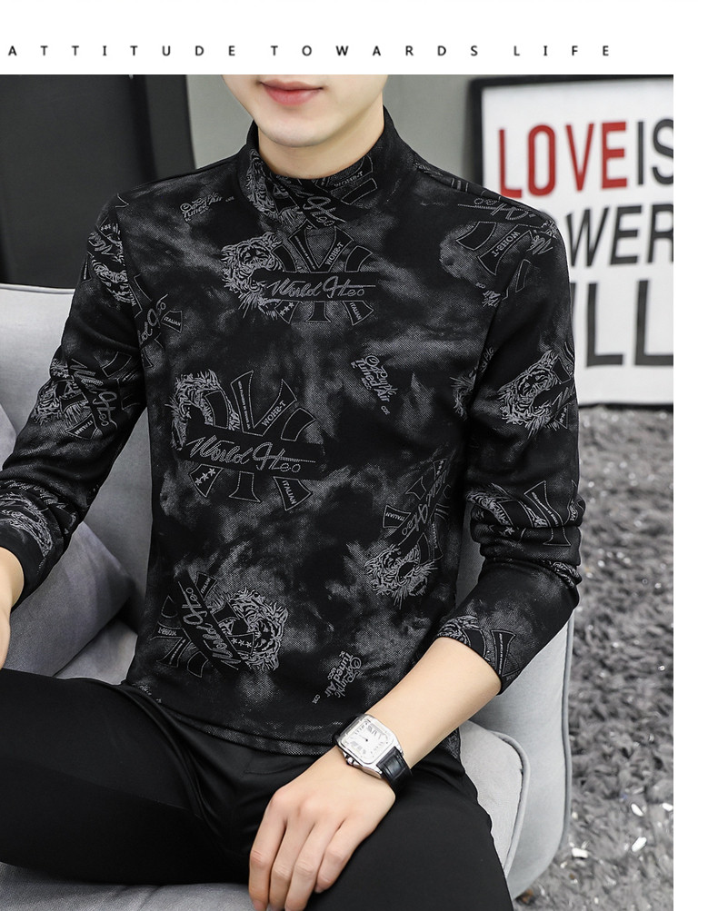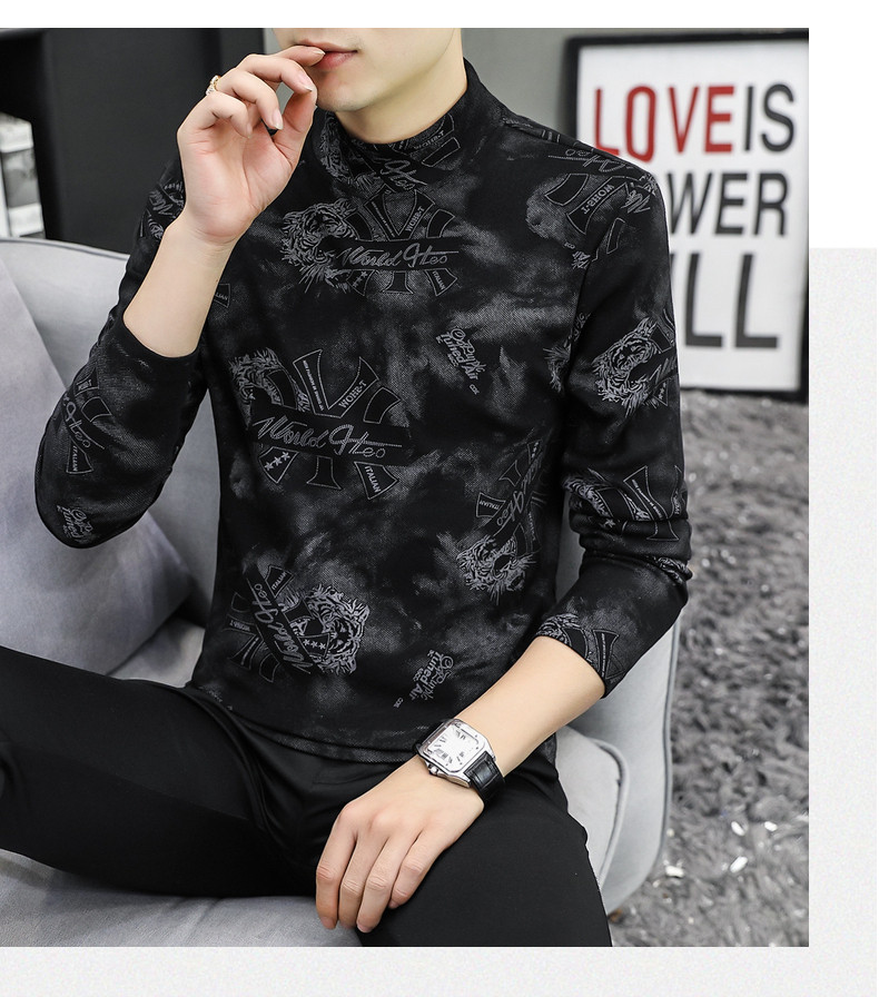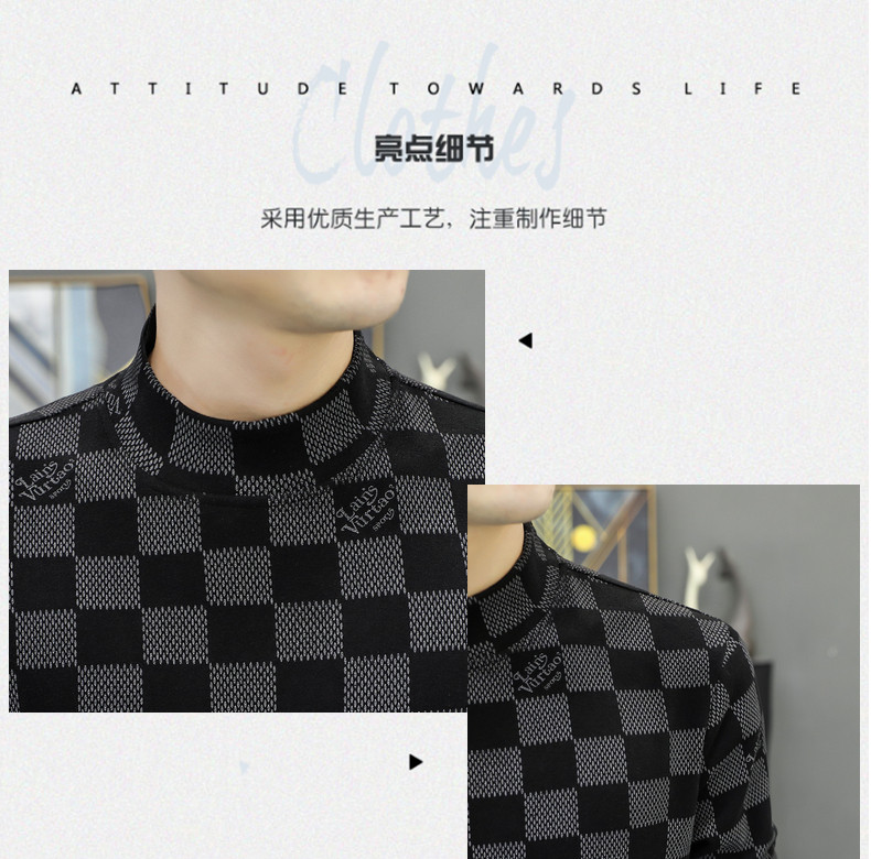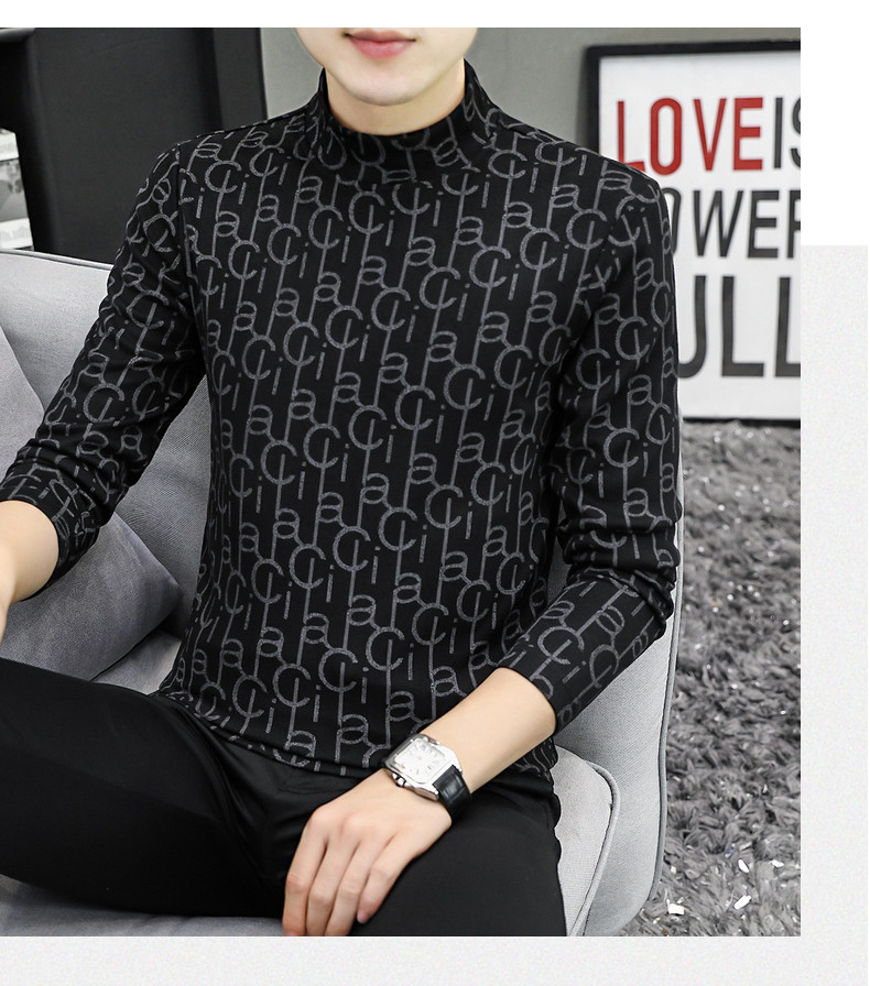 Long-Sleeve T-Shirt for Men, Trendy Ins Style, Inner Layer Autumn Clothing, Korean Version, German Velvet, Half-High Collar Top, Autumn Men's Base Shirt