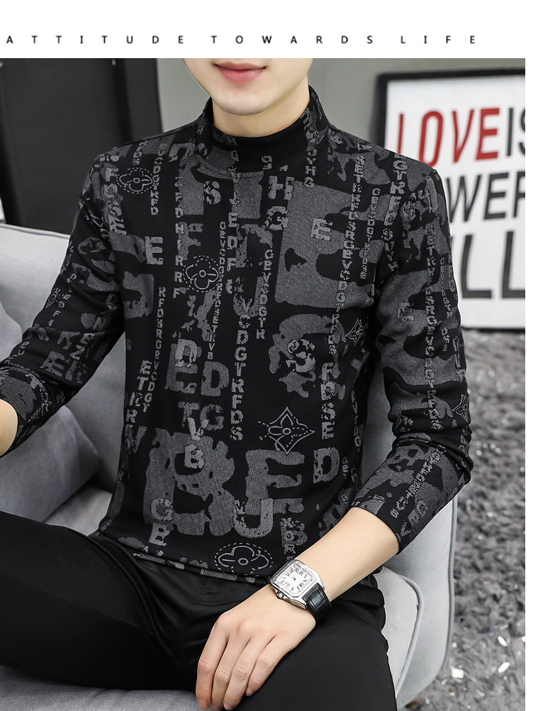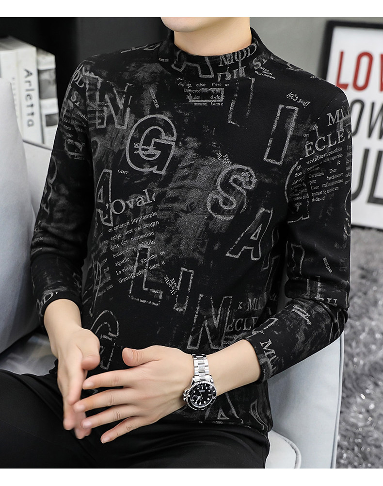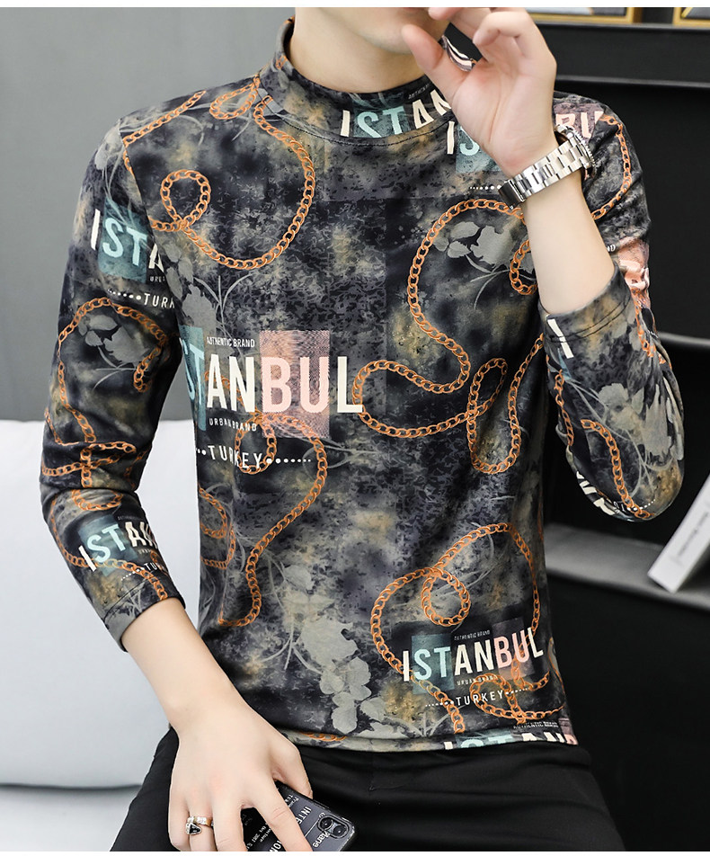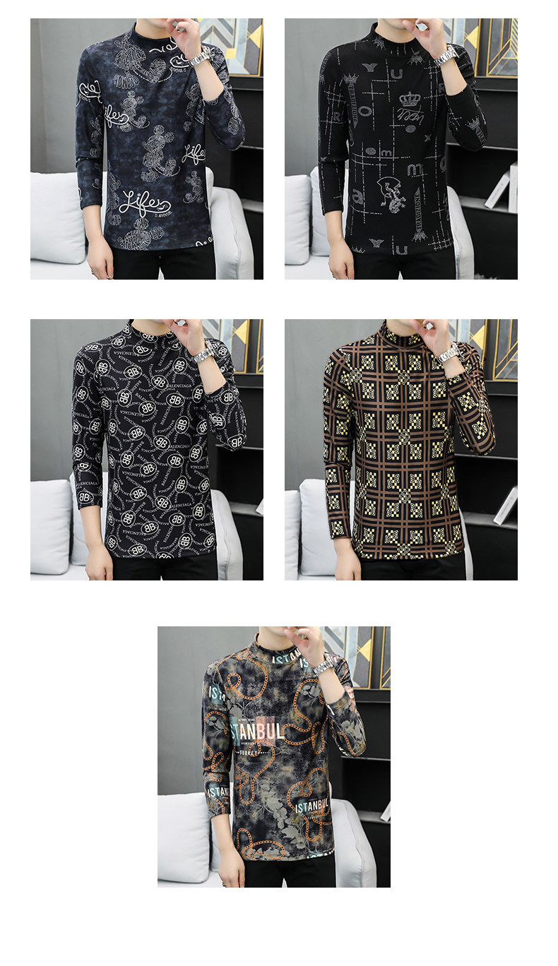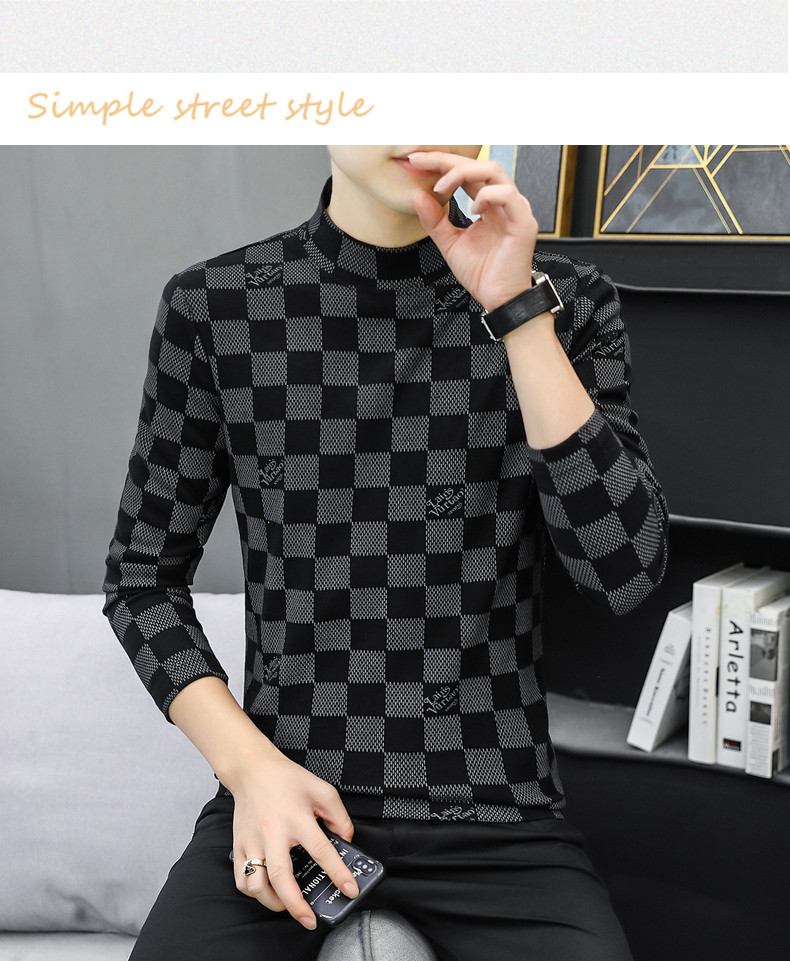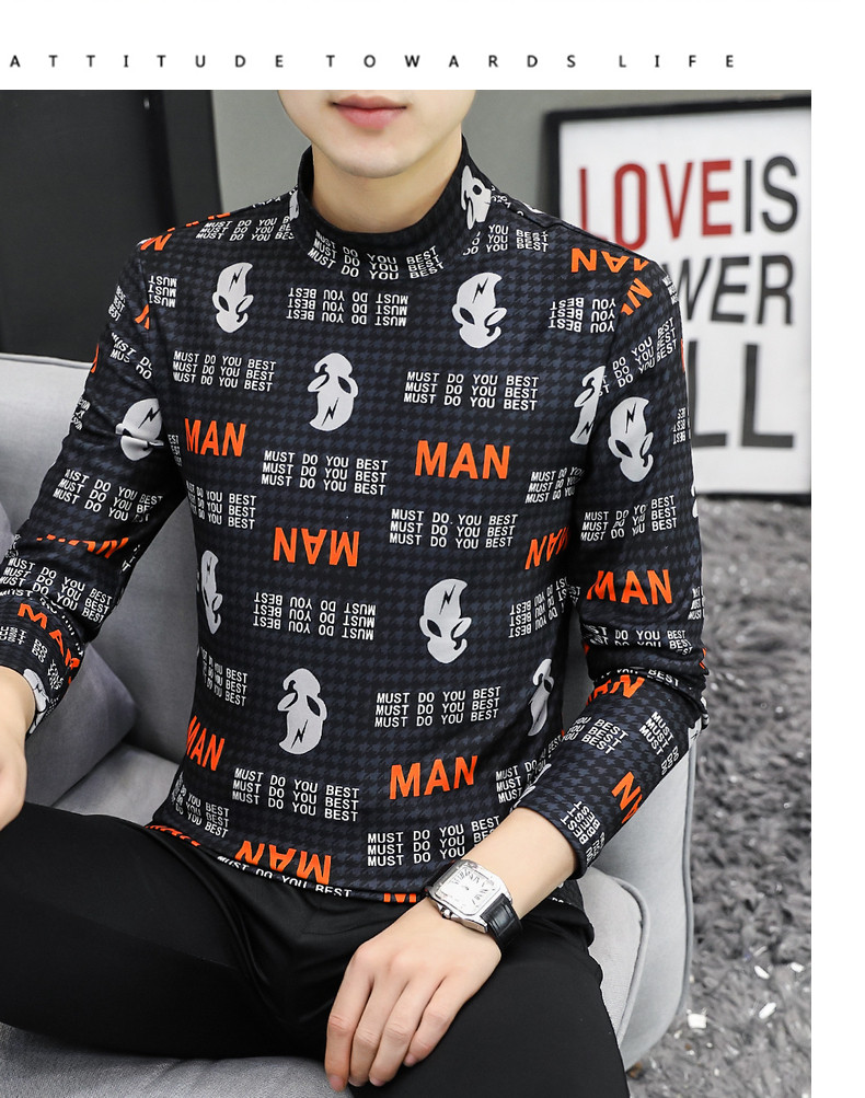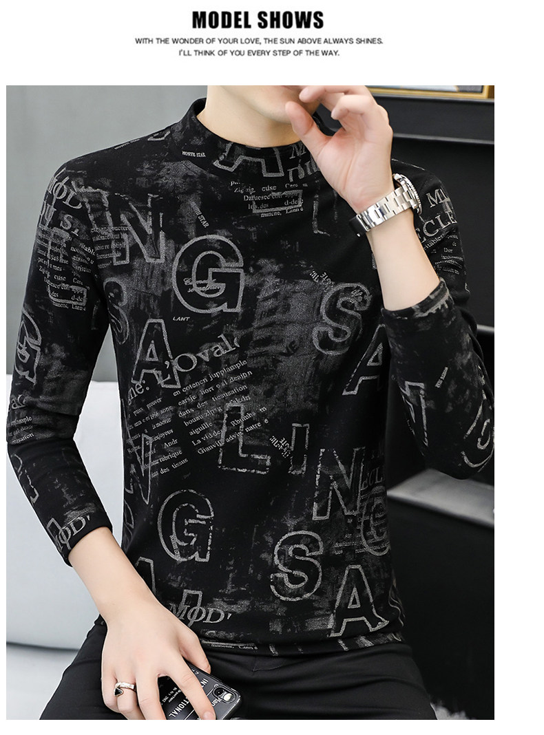 Long-Sleeve T-Shirt for Men, Trendy Ins Style, Inner Layer Autumn Clothing, Korean Version, German Velvet, Half-High Collar Top, Autumn Men's Base Shirt