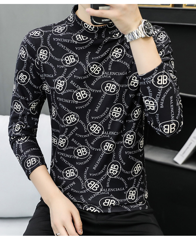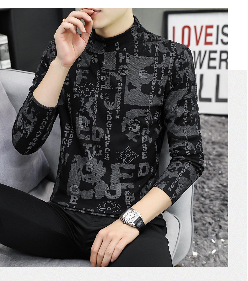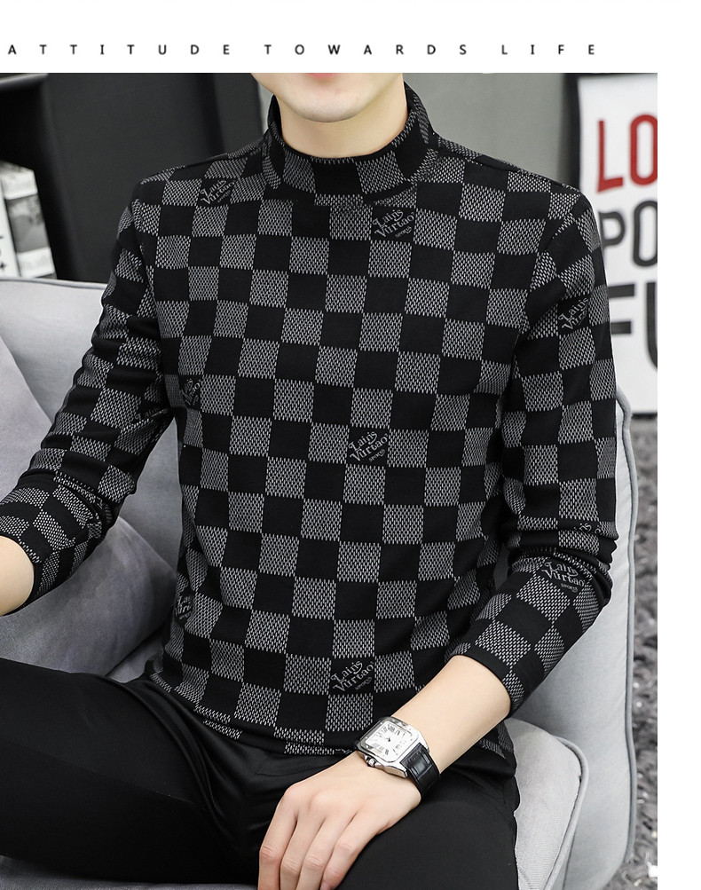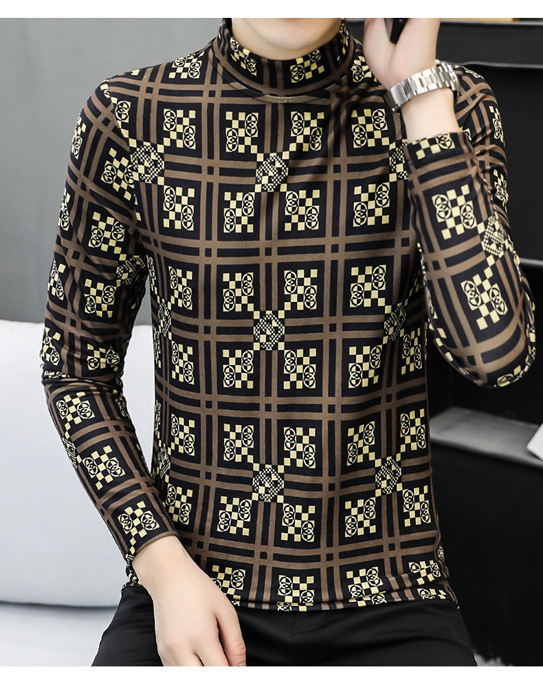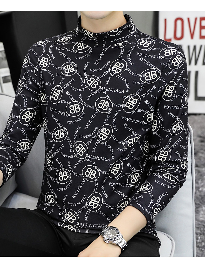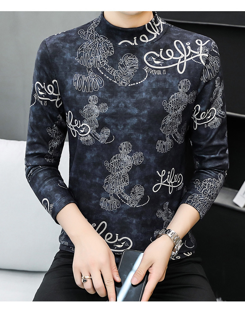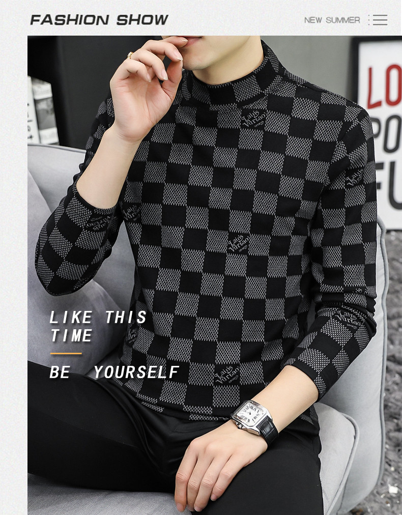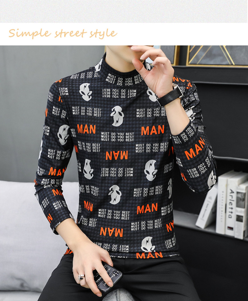 Long-Sleeve T-Shirt for Men, Trendy Ins Style, Inner Layer Autumn Clothing, Korean Version, German Velvet, Half-High Collar Top, Autumn Men's Base Shirt