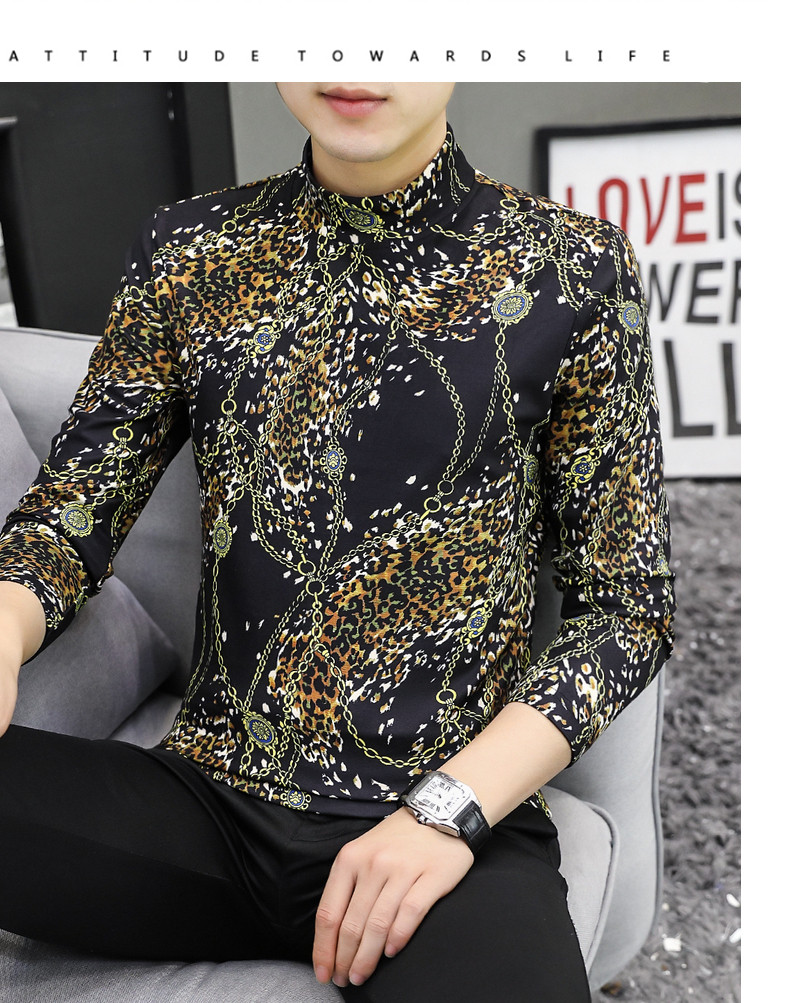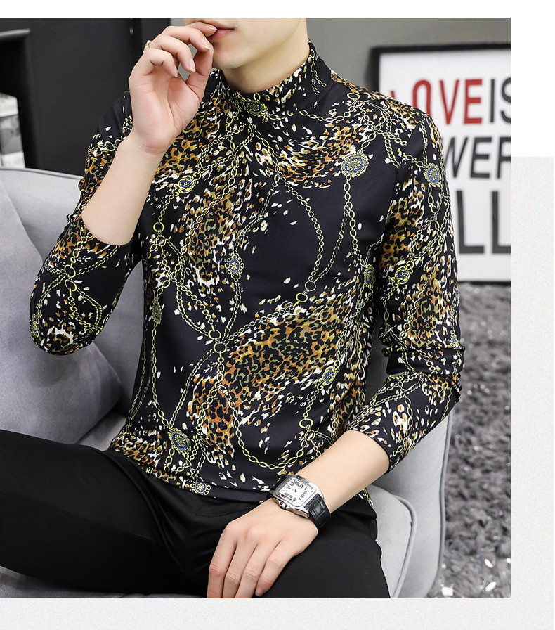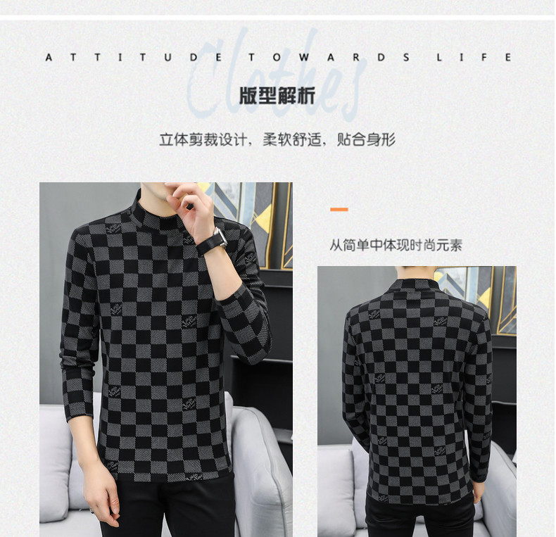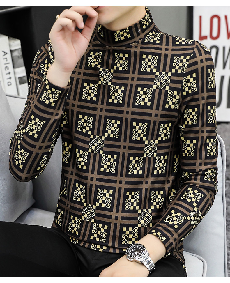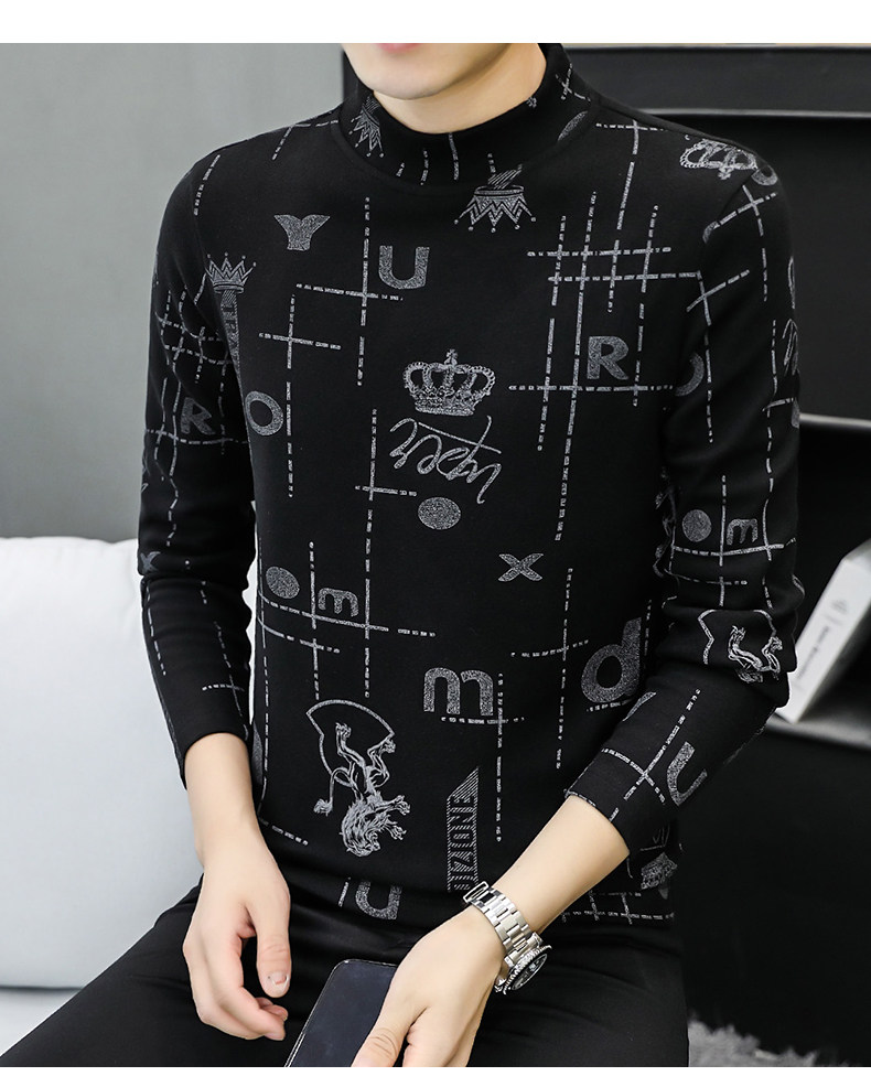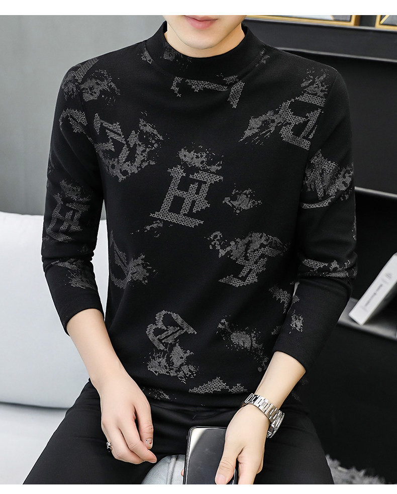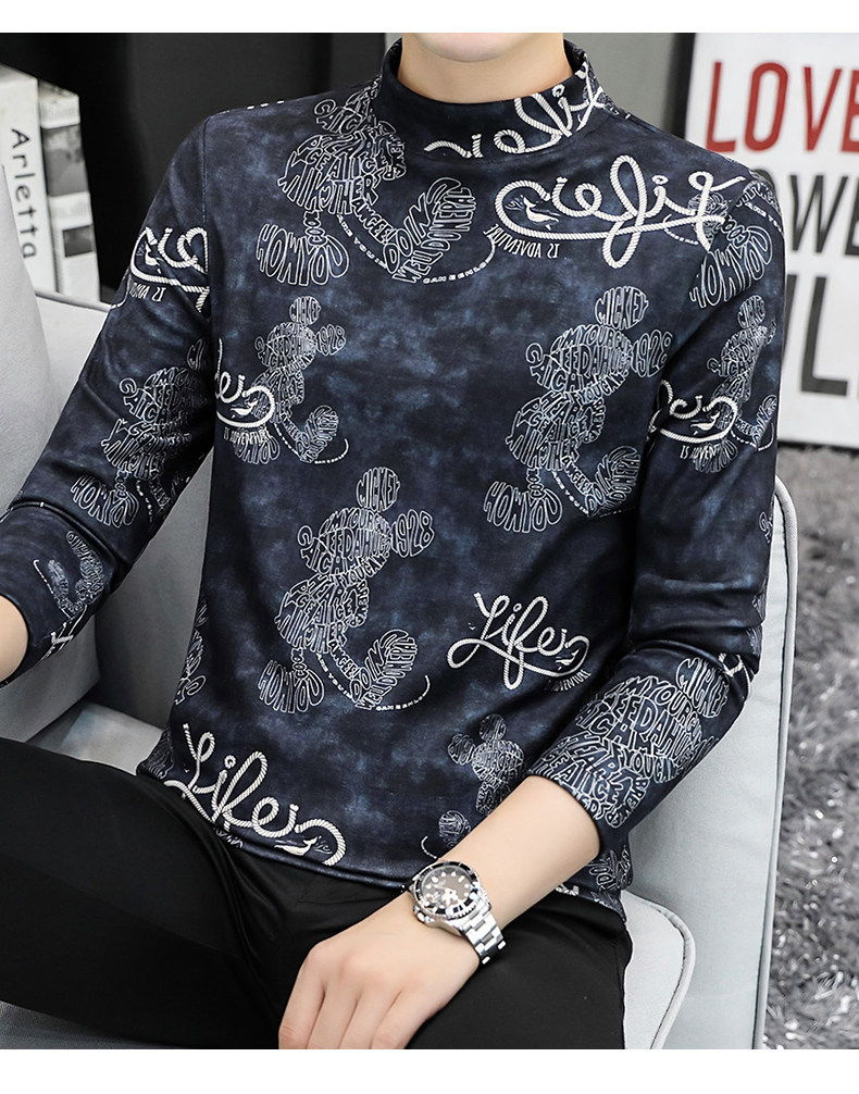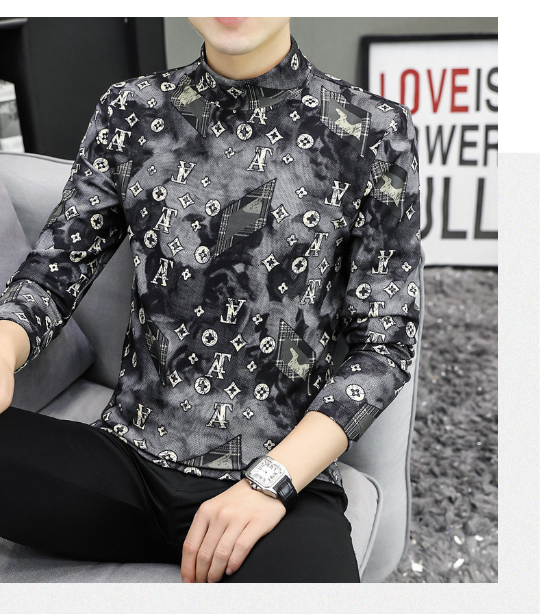 Long-Sleeve T-Shirt for Men, Trendy Ins Style, Inner Layer Autumn Clothing, Korean Version, German Velvet, Half-High Collar Top, Autumn Men's Base Shirt