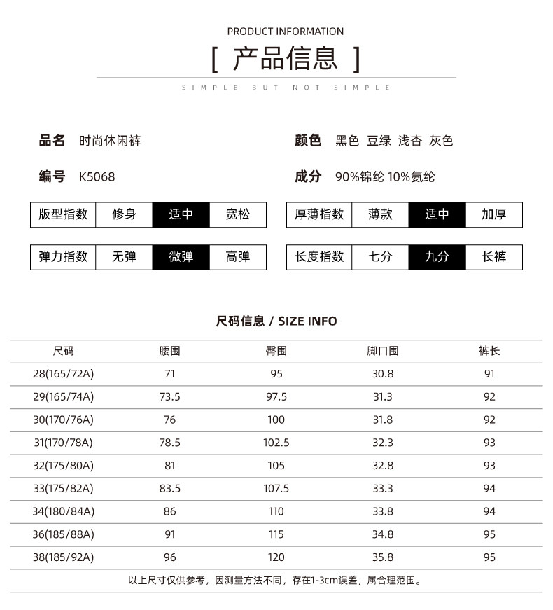 USA(inch) 28-30 30-32 32-34 34-38 38-42