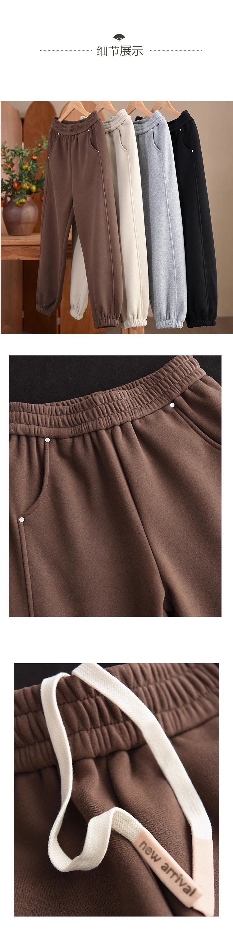 美拉德休闲裤女冬季新款裤子复古加厚保暖哈伦裤美式大码束脚长裤
