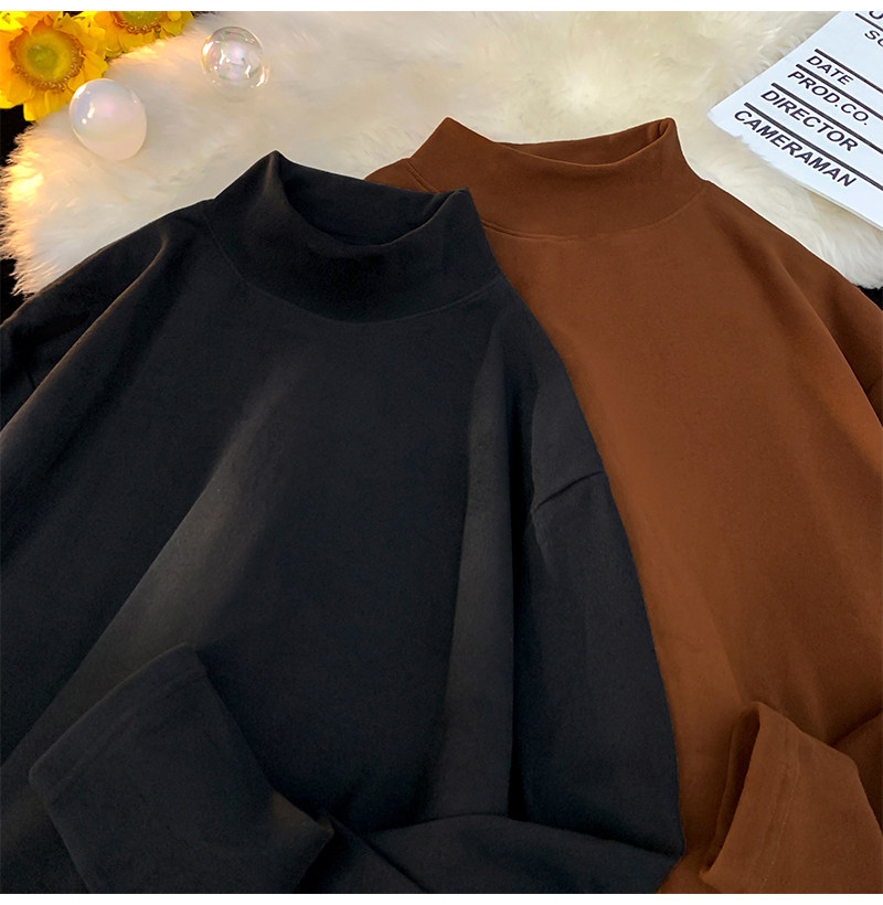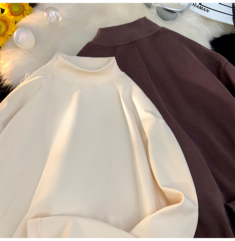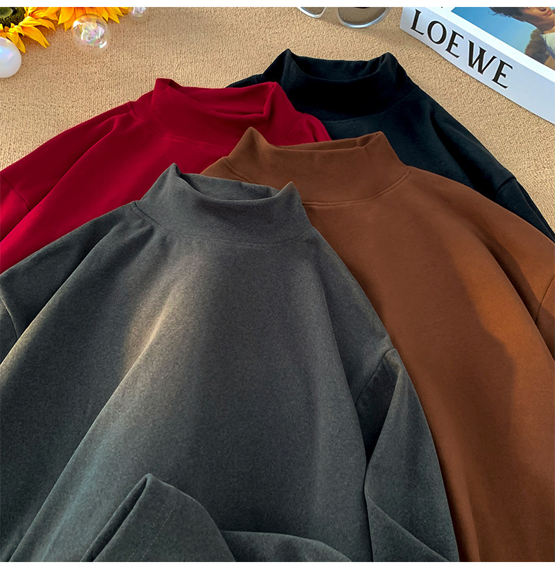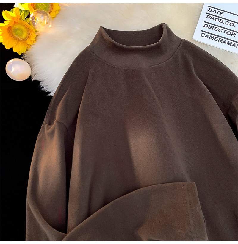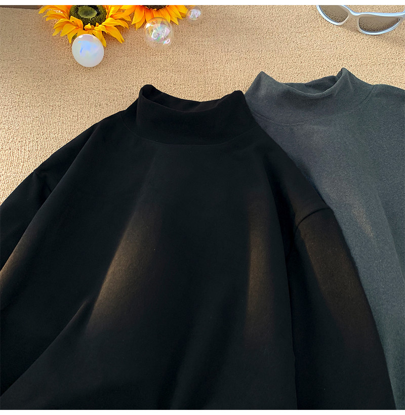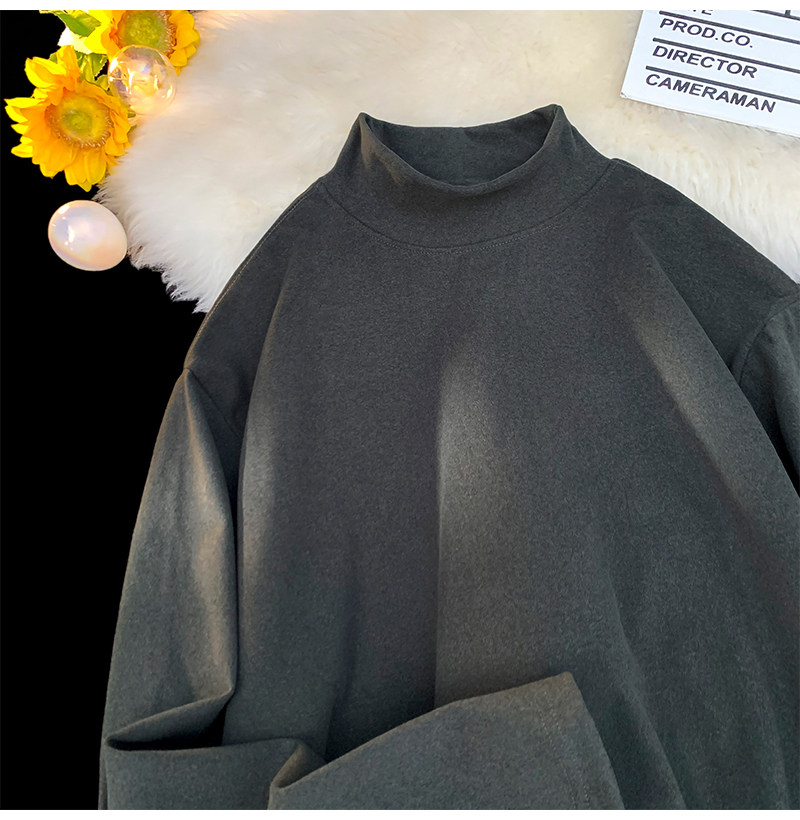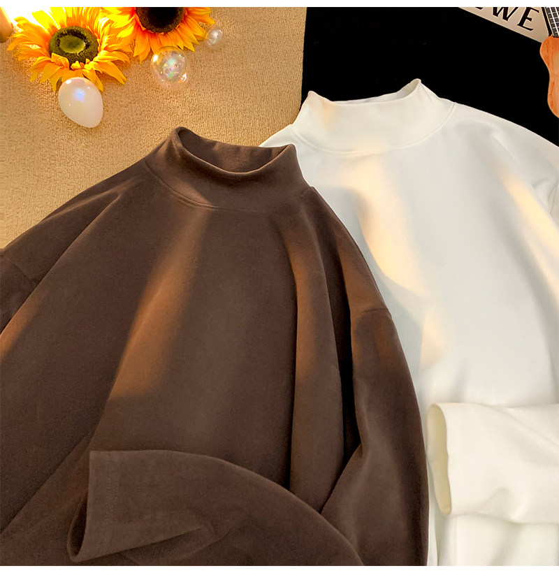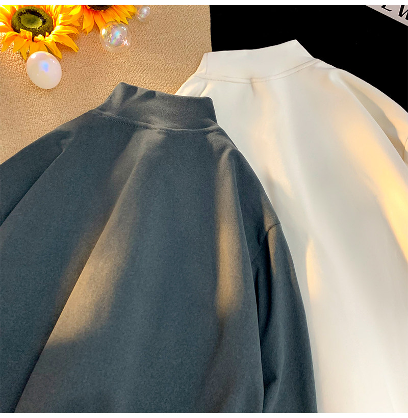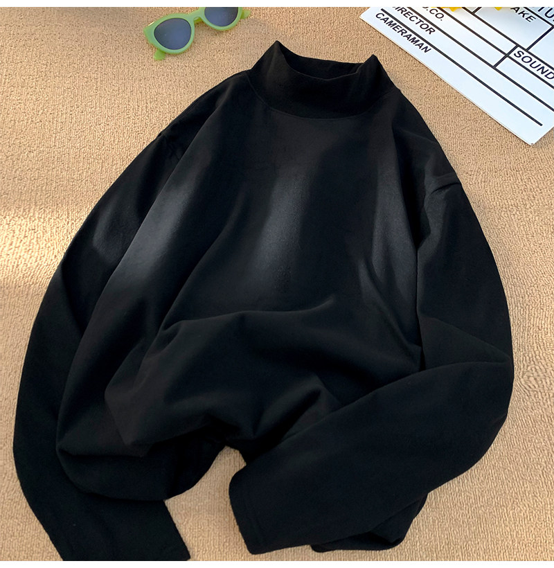 Double-Sided Thick Velvet Half-Turtleneck Sweatshirt for Men, Autumn and Winter Style, Suitable as an Inner Layer with a Coat, Light Mature Style Men's Base Shirt