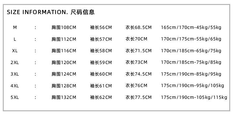Size M,L,XL,2XL,3XL,4XL,5XL