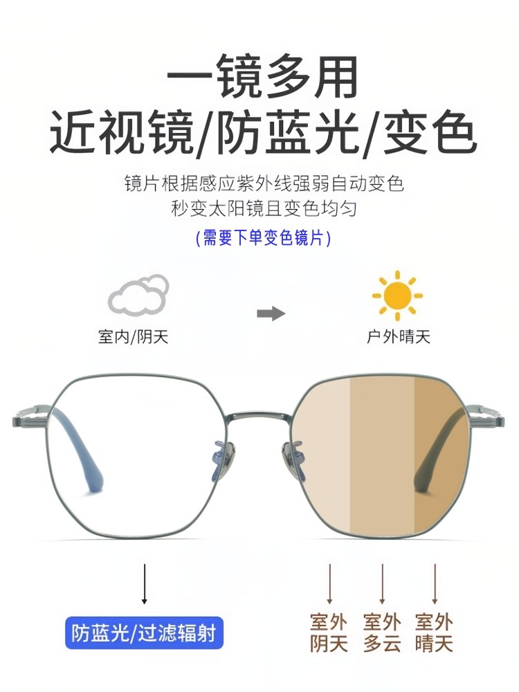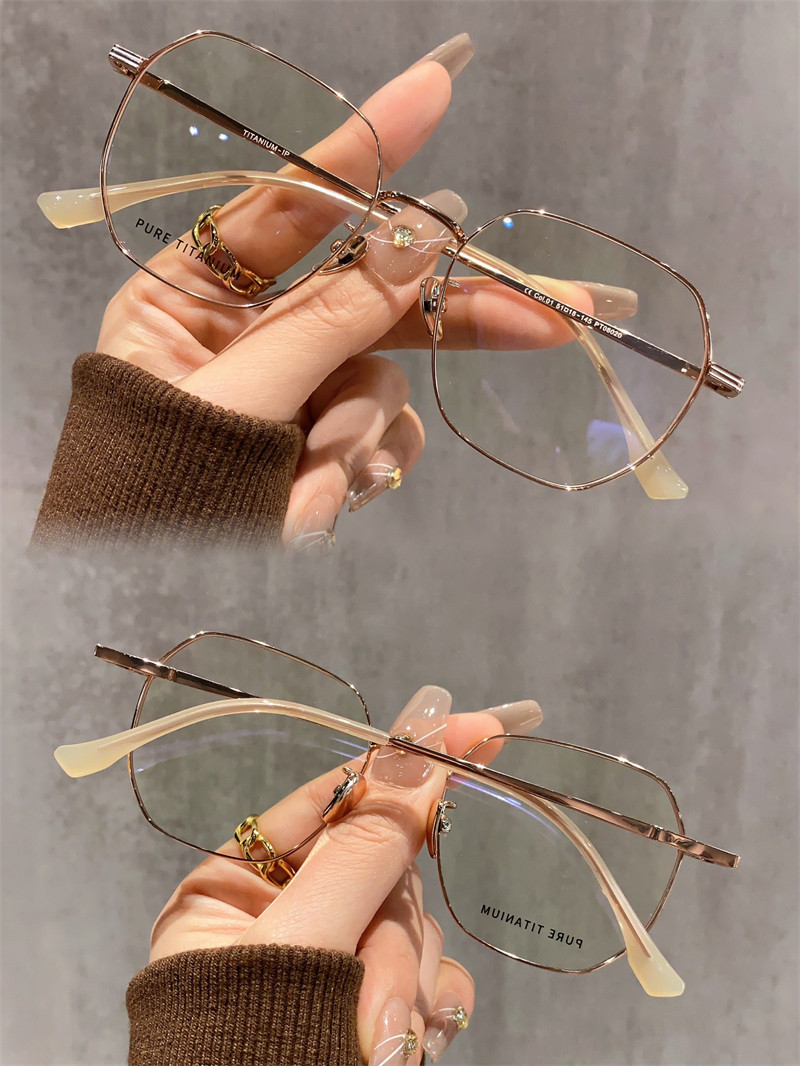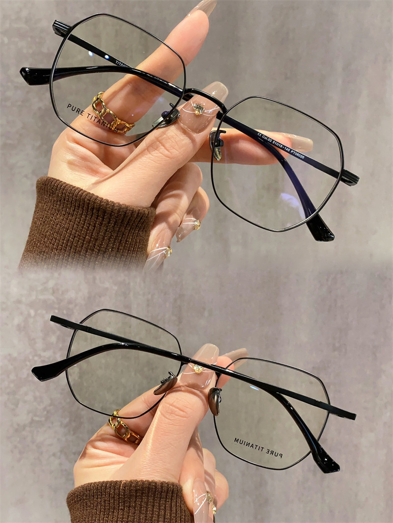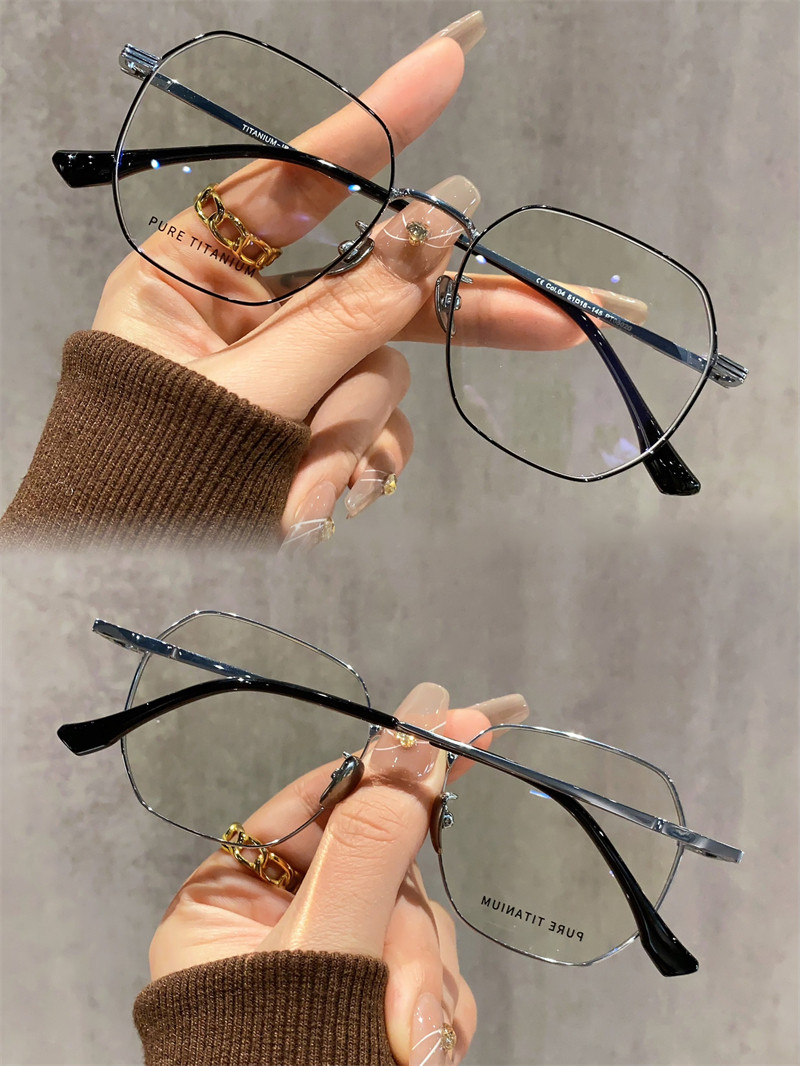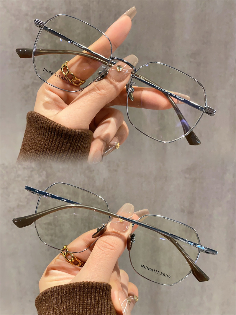 8克高级感超轻纯钛眼镜近视女可配有度数素颜多边形眼睛镜框架男