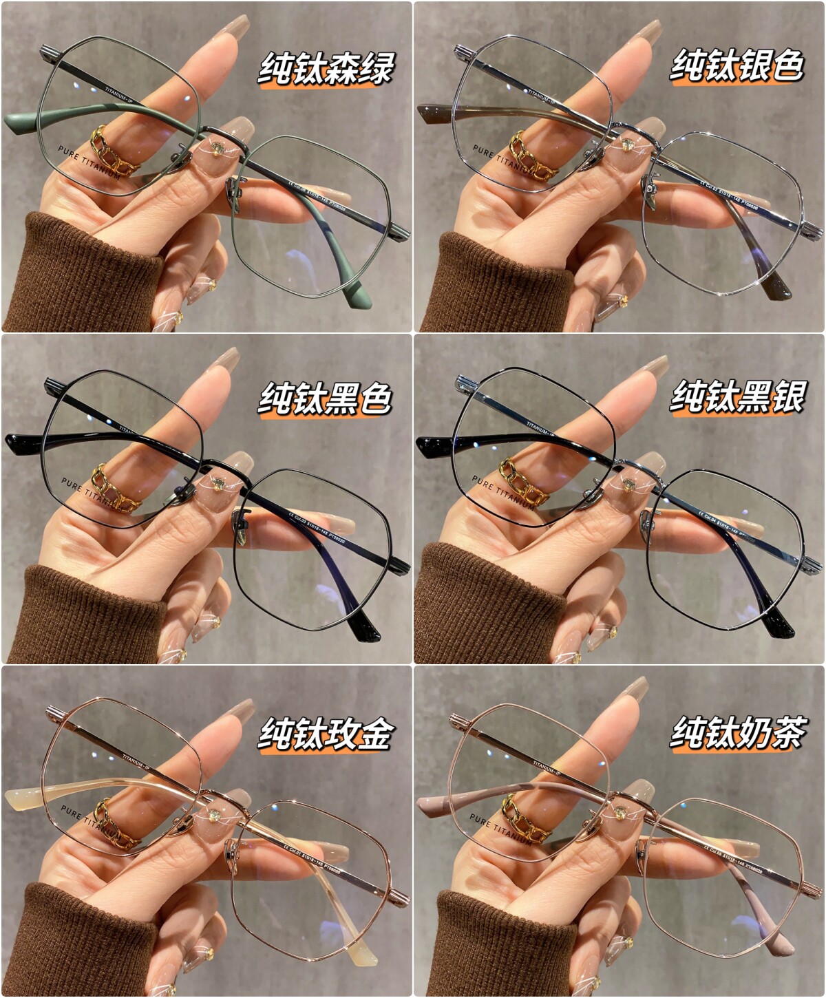 颜色分类 纯钛森绿,纯钛玫金,纯钛银色,纯钛奶茶,纯钛黑色,纯钛黑银