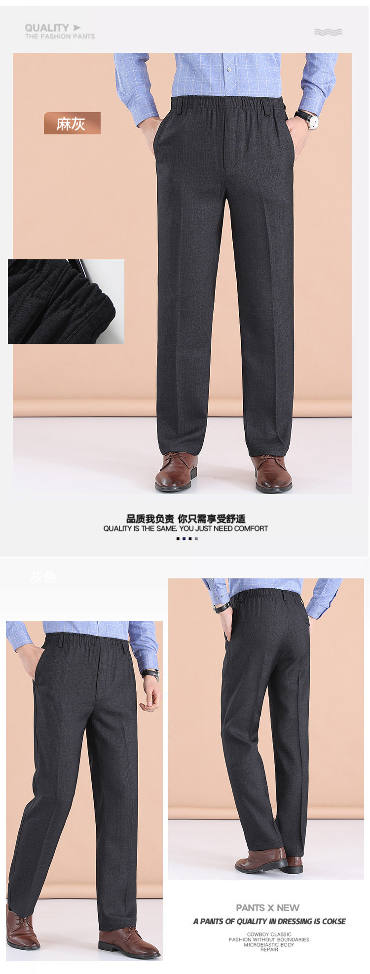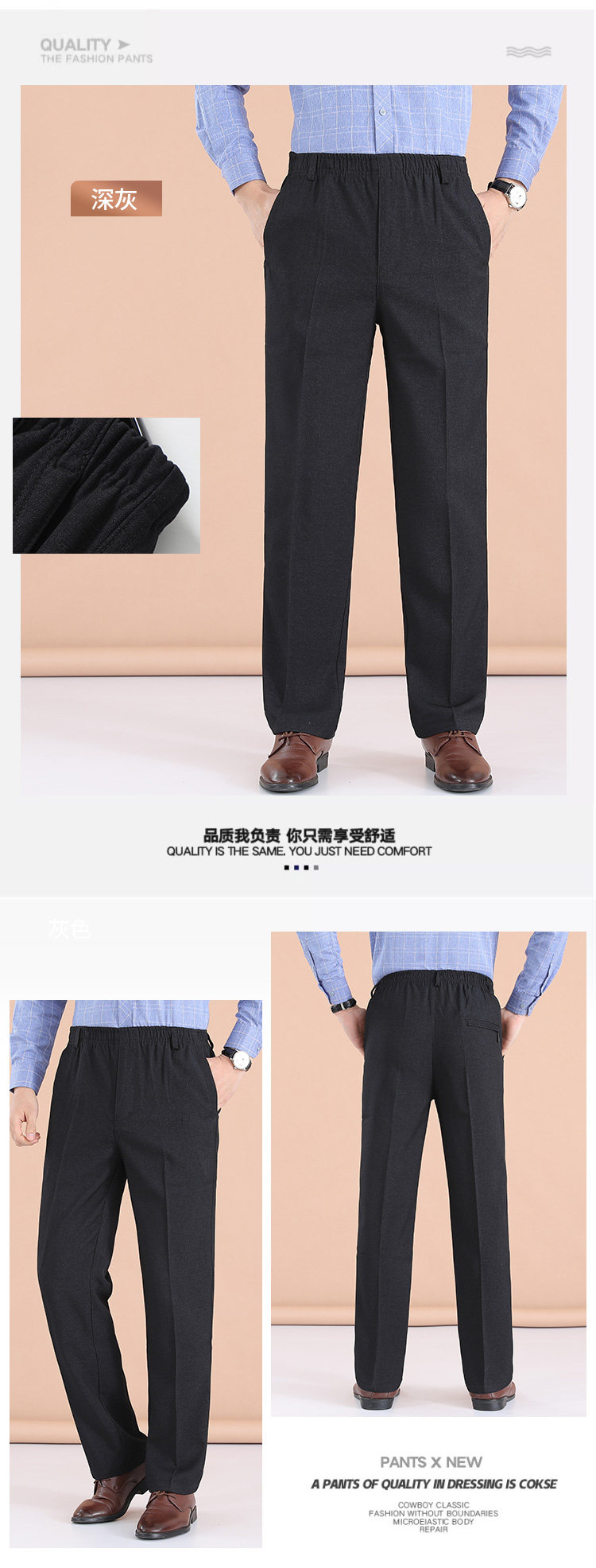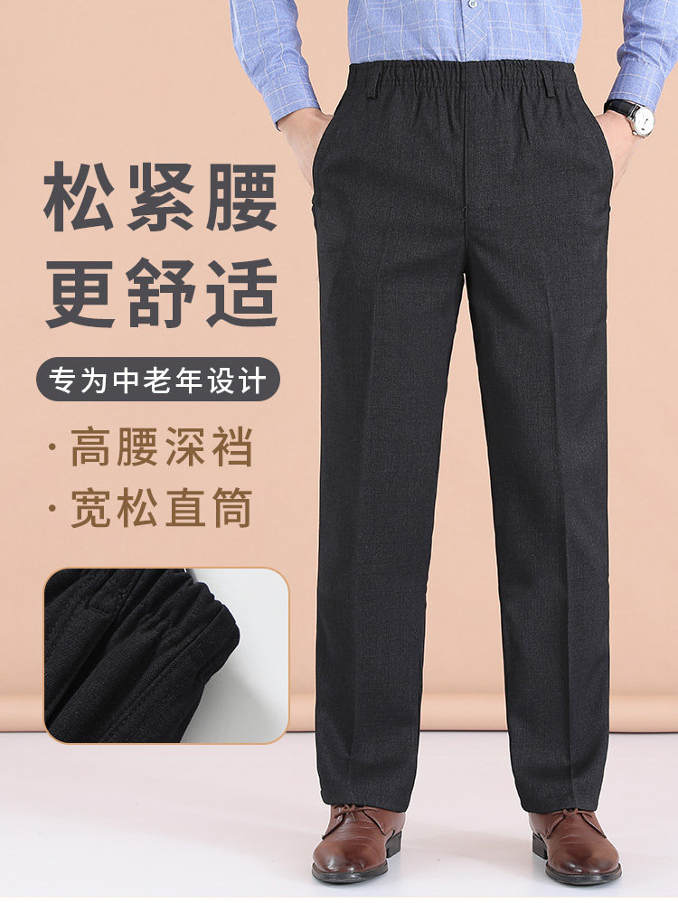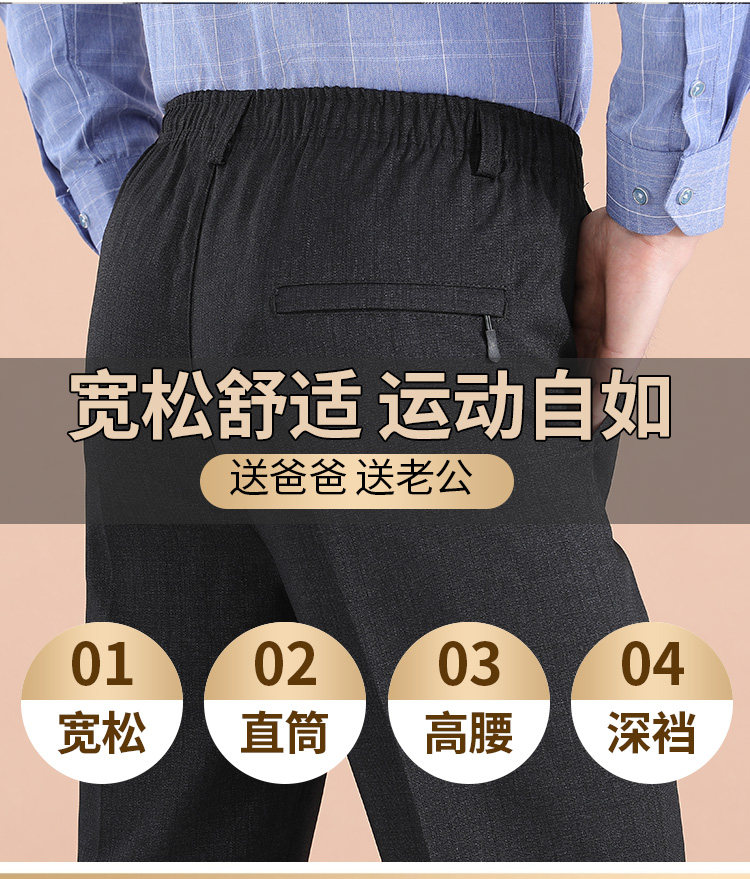 Dad's Pants, Autumn and Winter Style, Middle-Aged and Elderly Men's Casual Pants, Elderly Men's Fleece-Lined Elastic Waist Pants, Grandpa's Thickened Pants