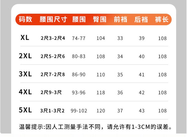 Outseam (cm) 99 cm 101.5 cm 104 cm 106.5 cm 109 cm