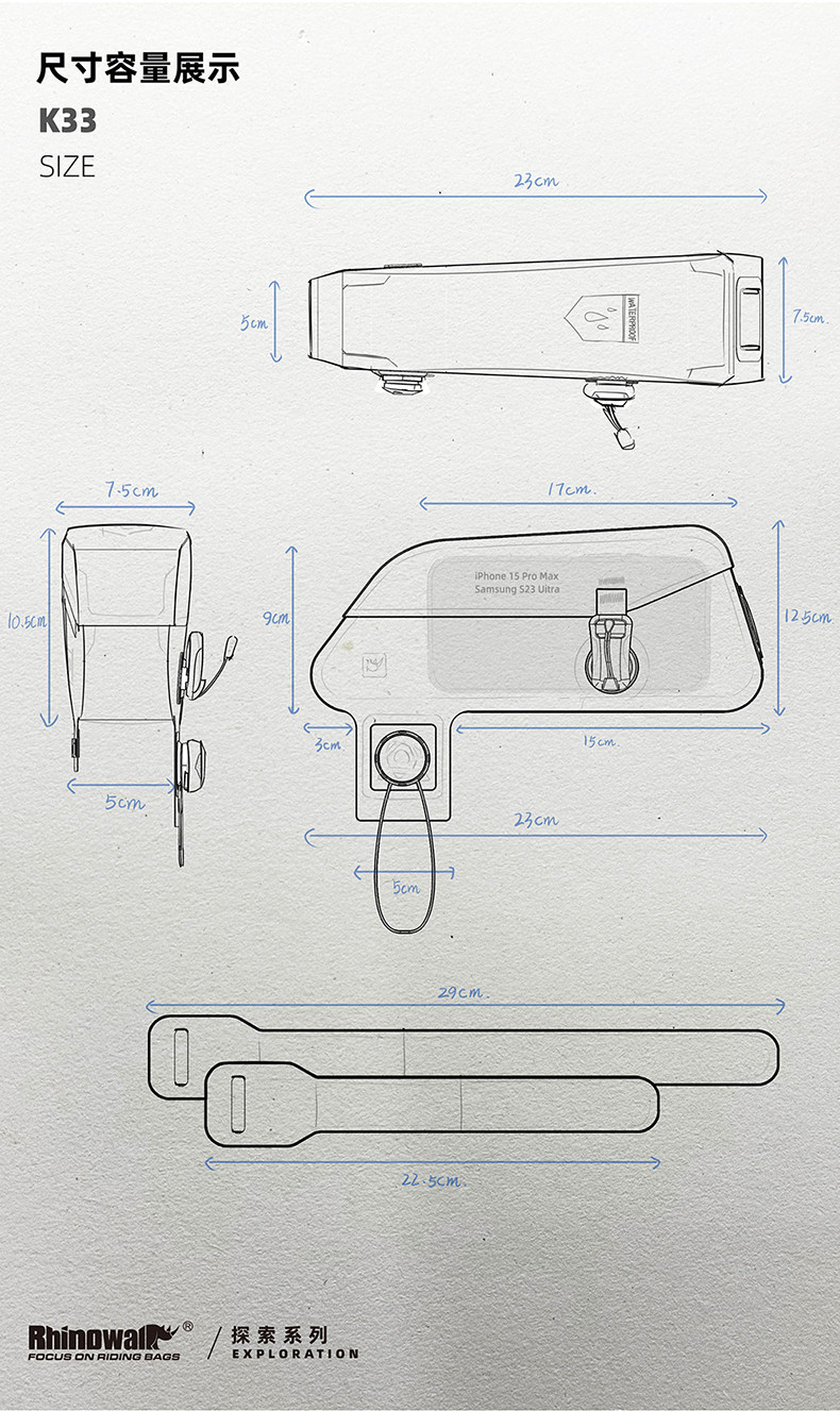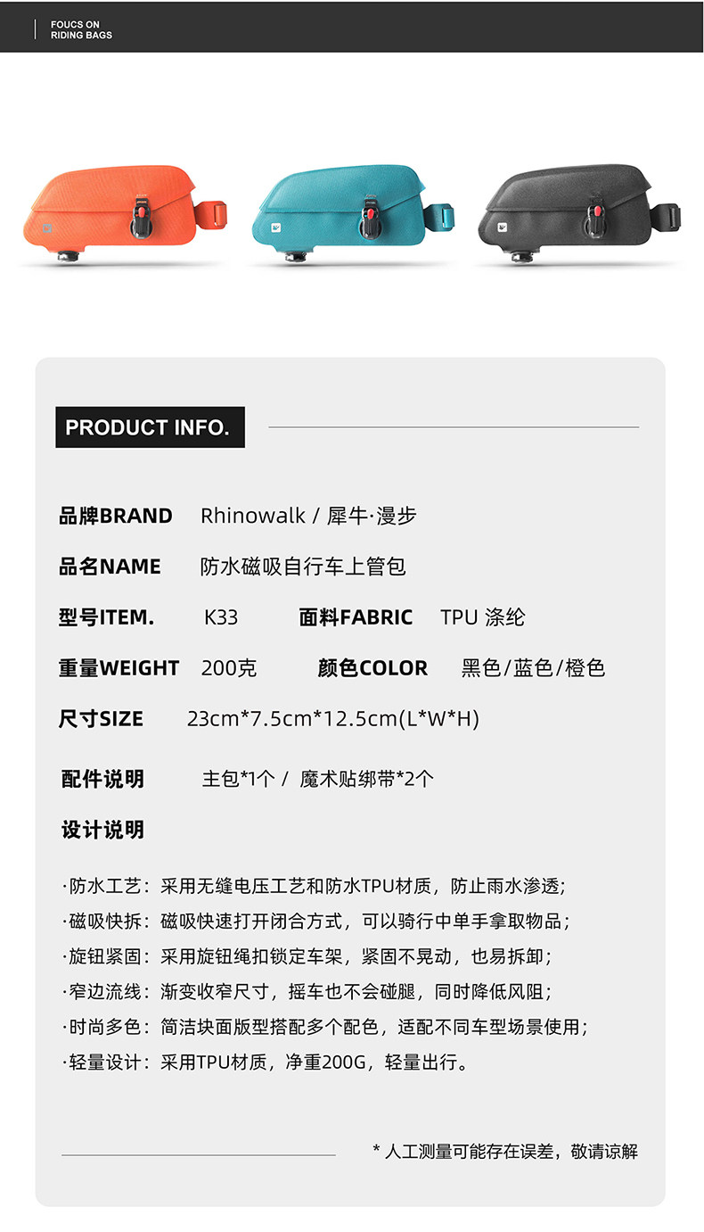 Rhinowalk Magnetic Waterproof Bicycle Bag for Top Tube, Road Bike Front Frame Bag, Cycling Storage Bag
