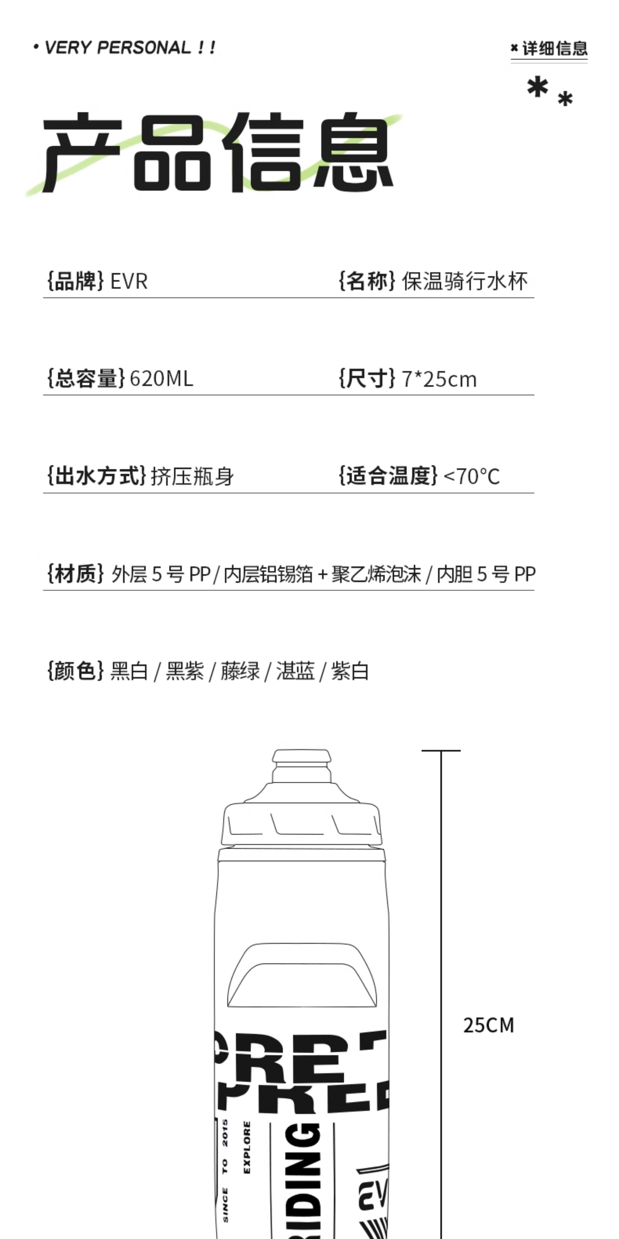 EVR骑行水壶运动水杯大容量挤压公路自行车专用户外骑行装备便携