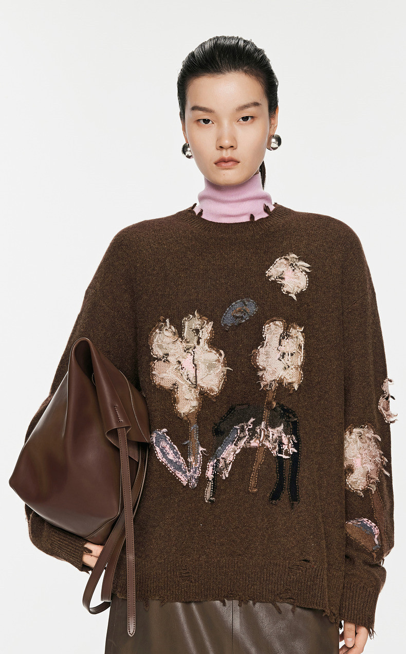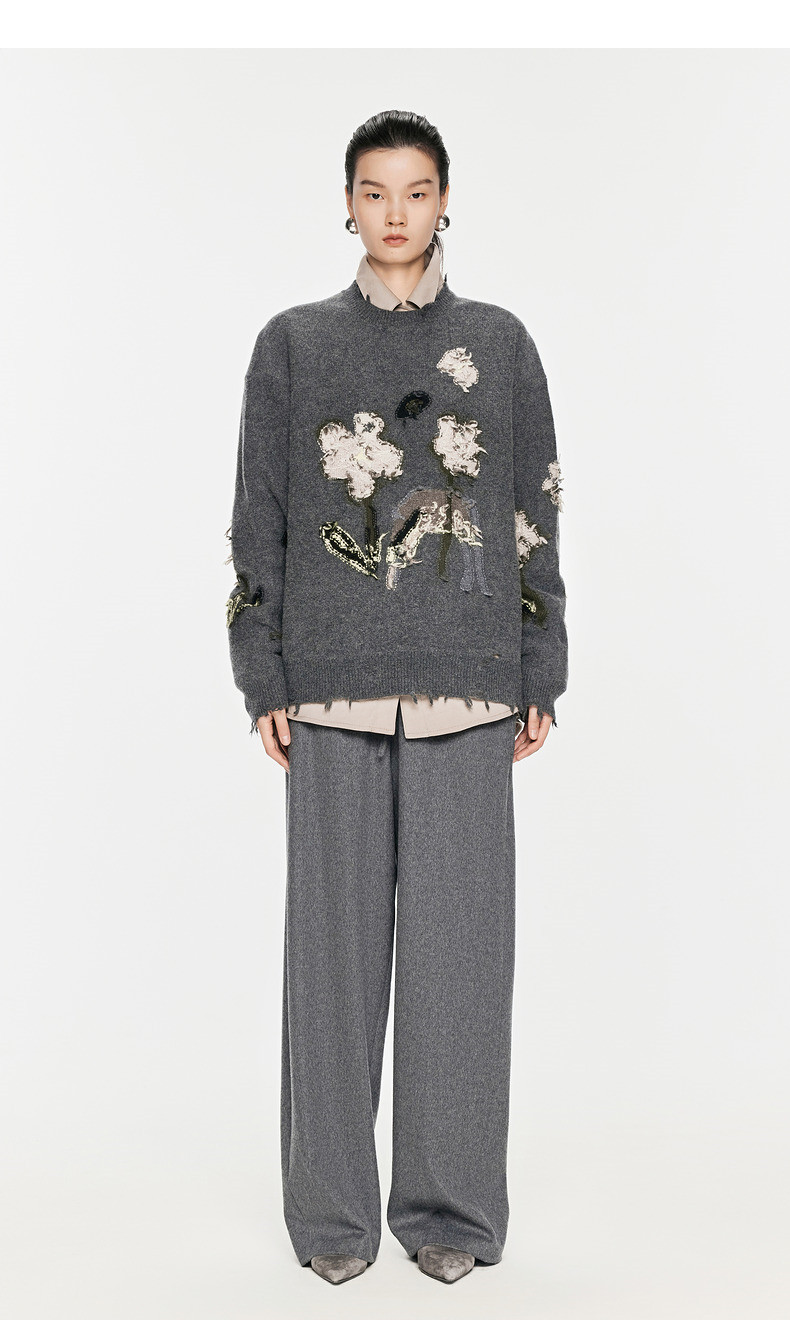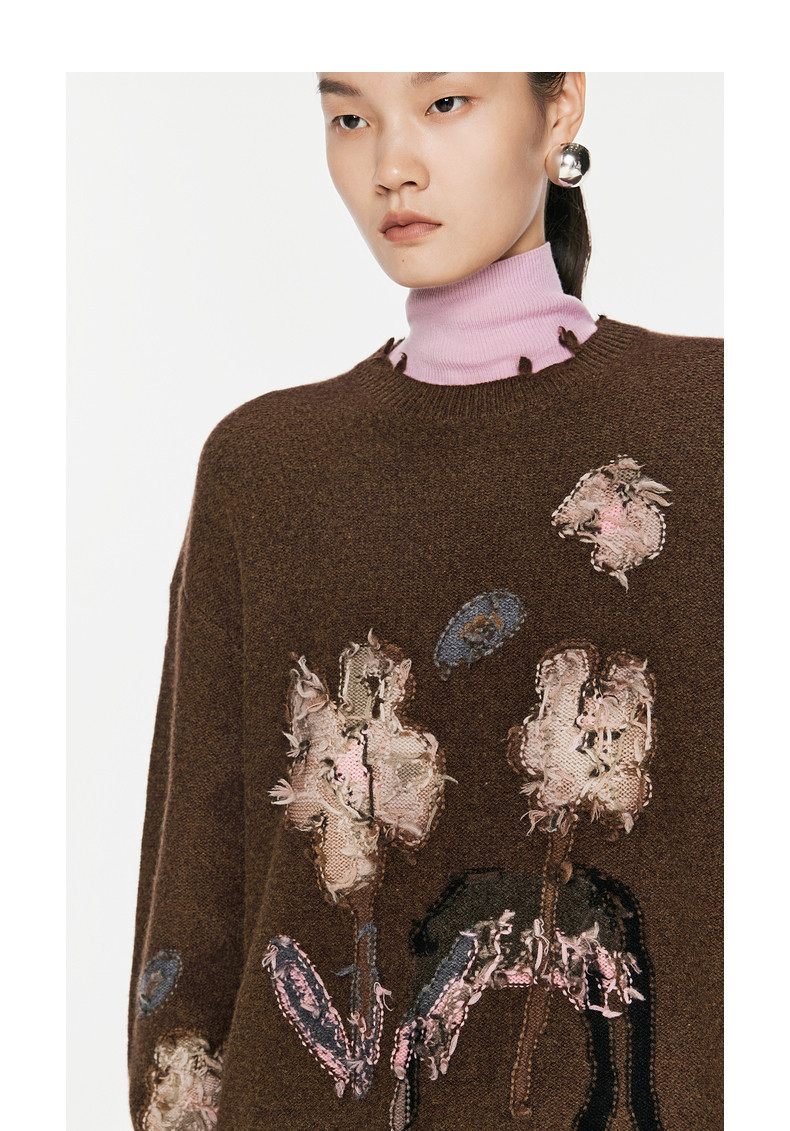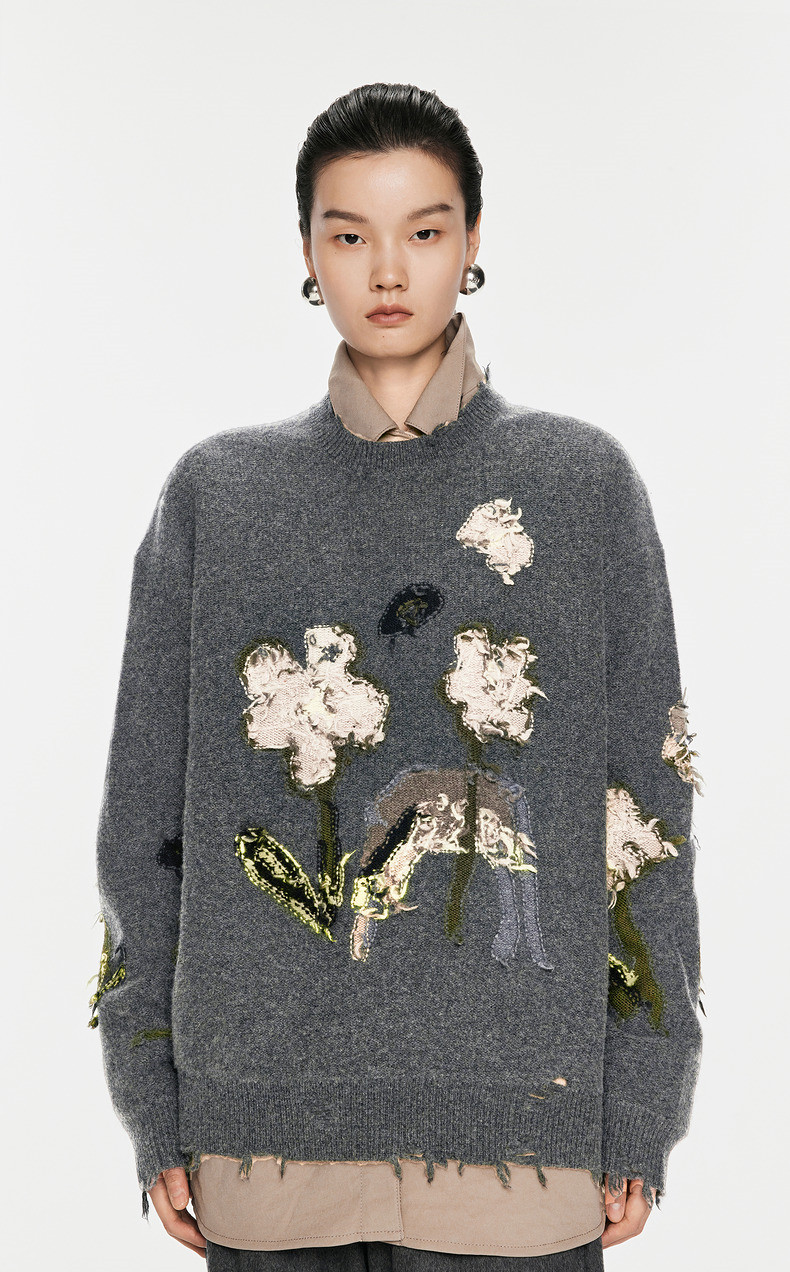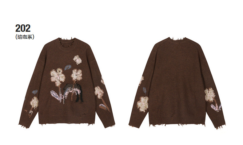 Jiangnan Buyi Spring and Autumn Knitted Sweater Crochet Flower Sweater Loose Pullover 5O9315400