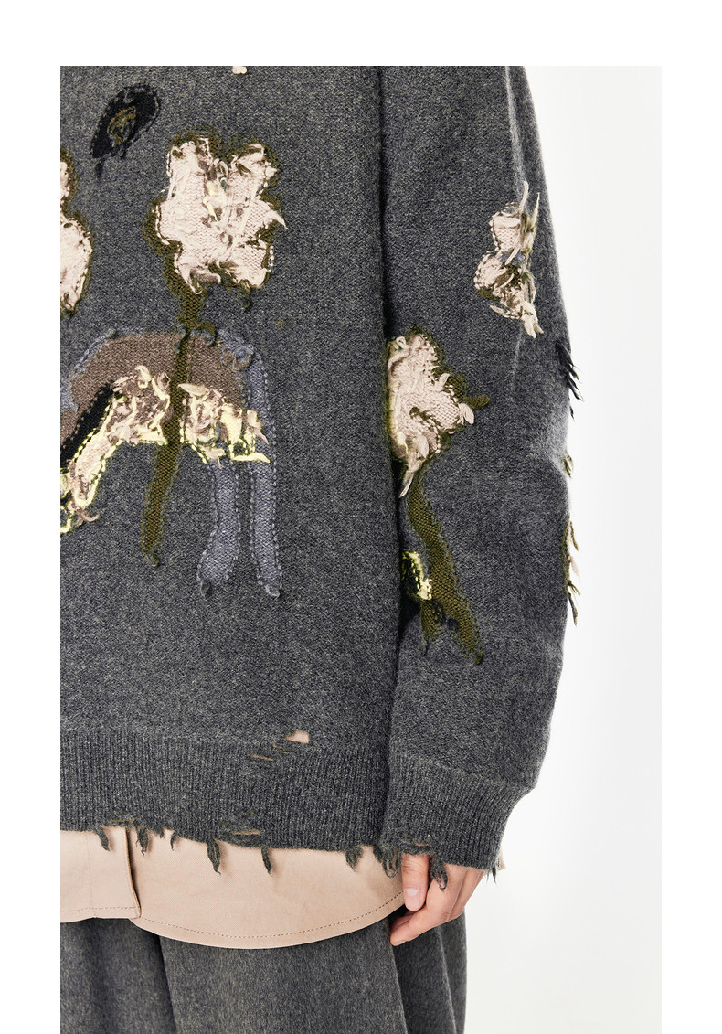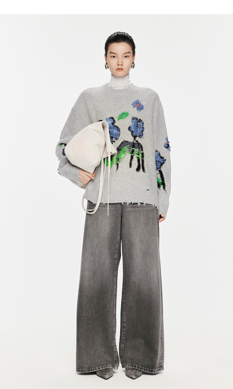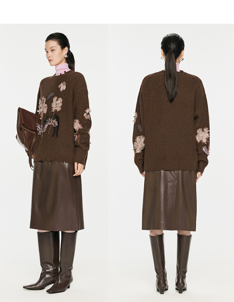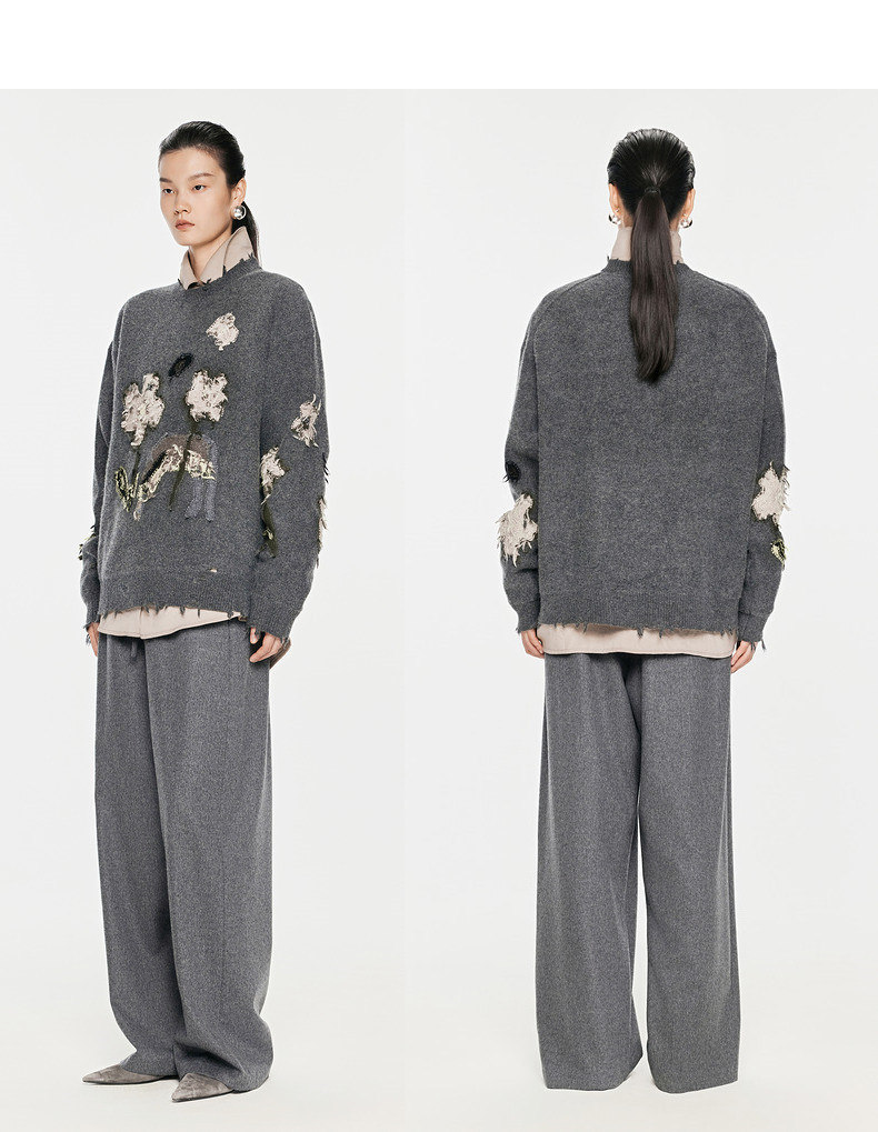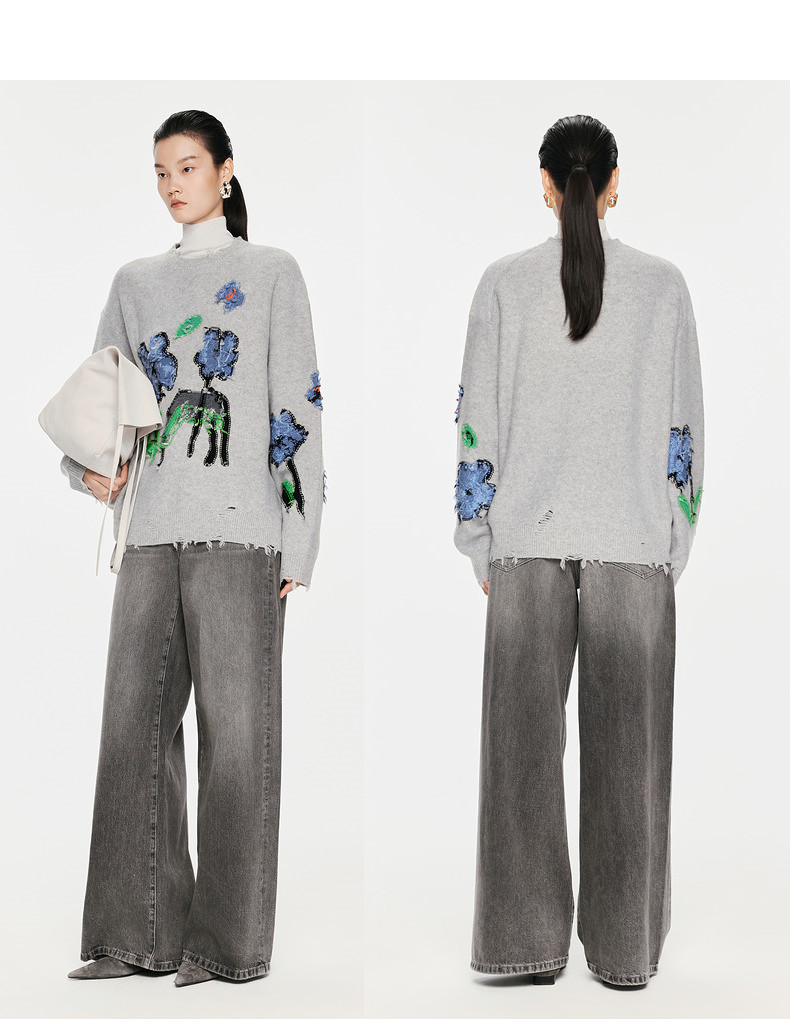 Jiangnan Buyi Spring and Autumn Knitted Sweater Crochet Flower Sweater Loose Pullover 5O9315400