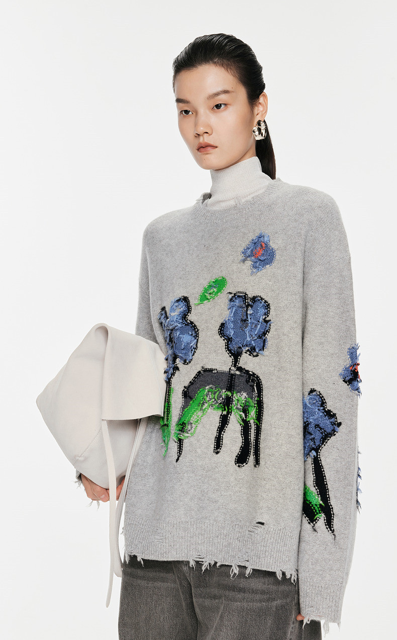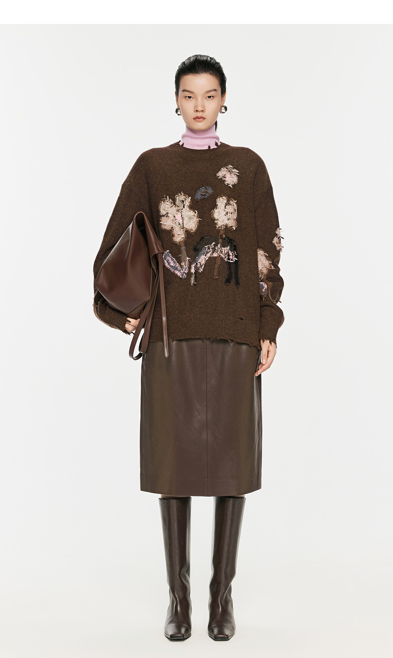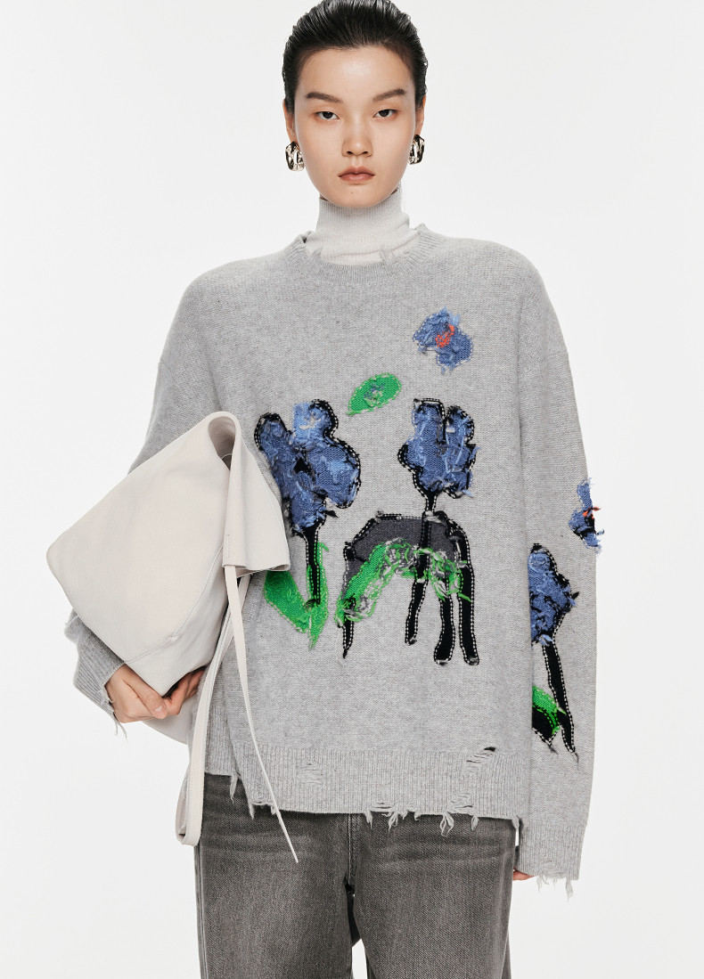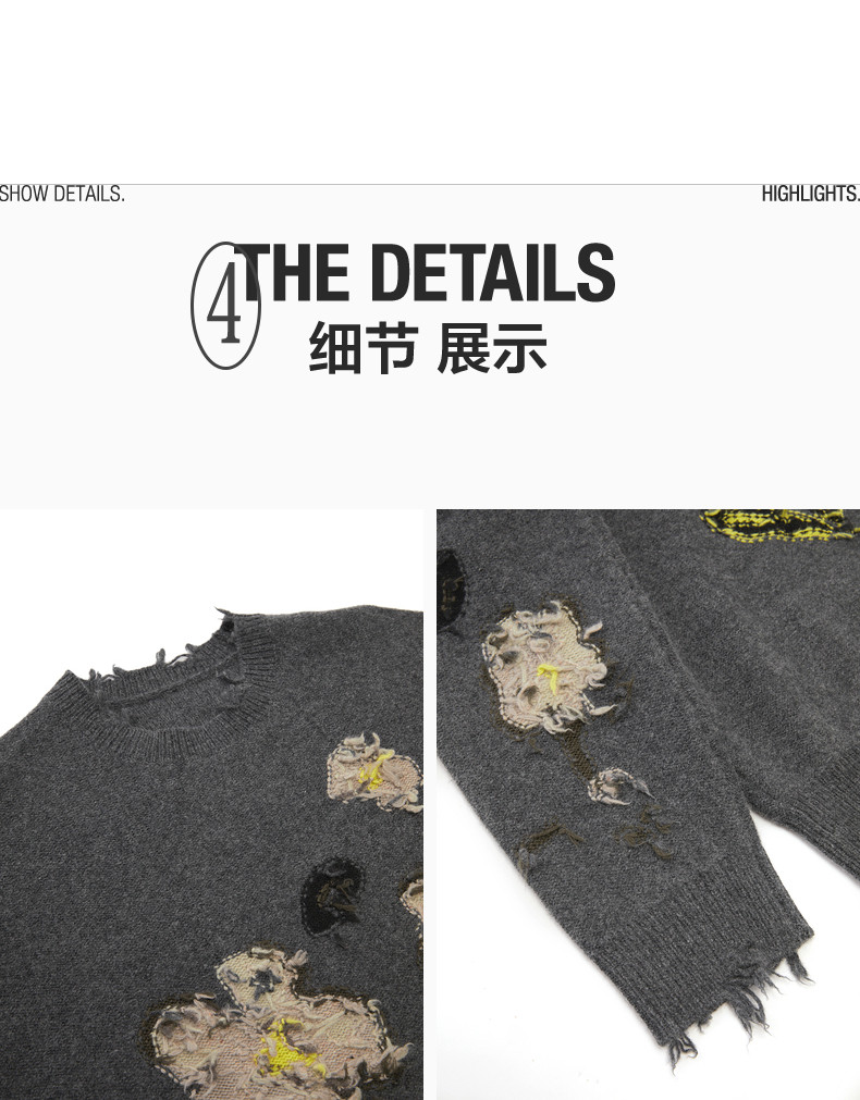 Jiangnan Buyi Spring and Autumn Knitted Sweater Crochet Flower Sweater Loose Pullover 5O9315400