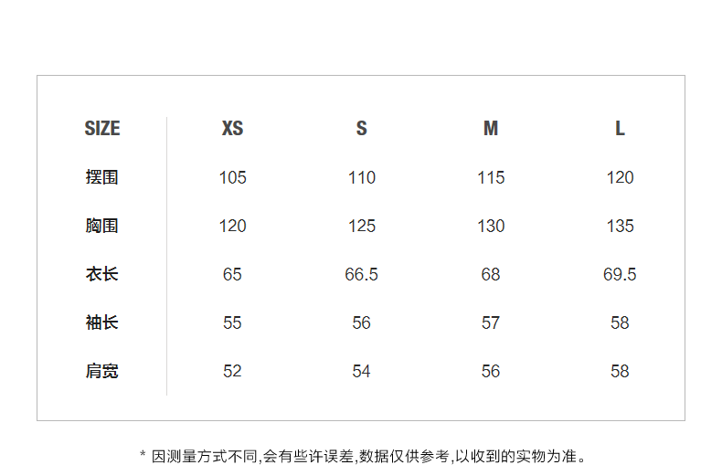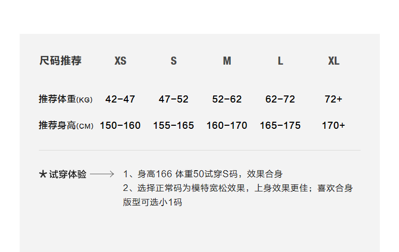 China (cm) 160-165/84-86 165-170 / 88-90 167-172 / 92-96 168-173 / 98-102 170-176 / 106-110