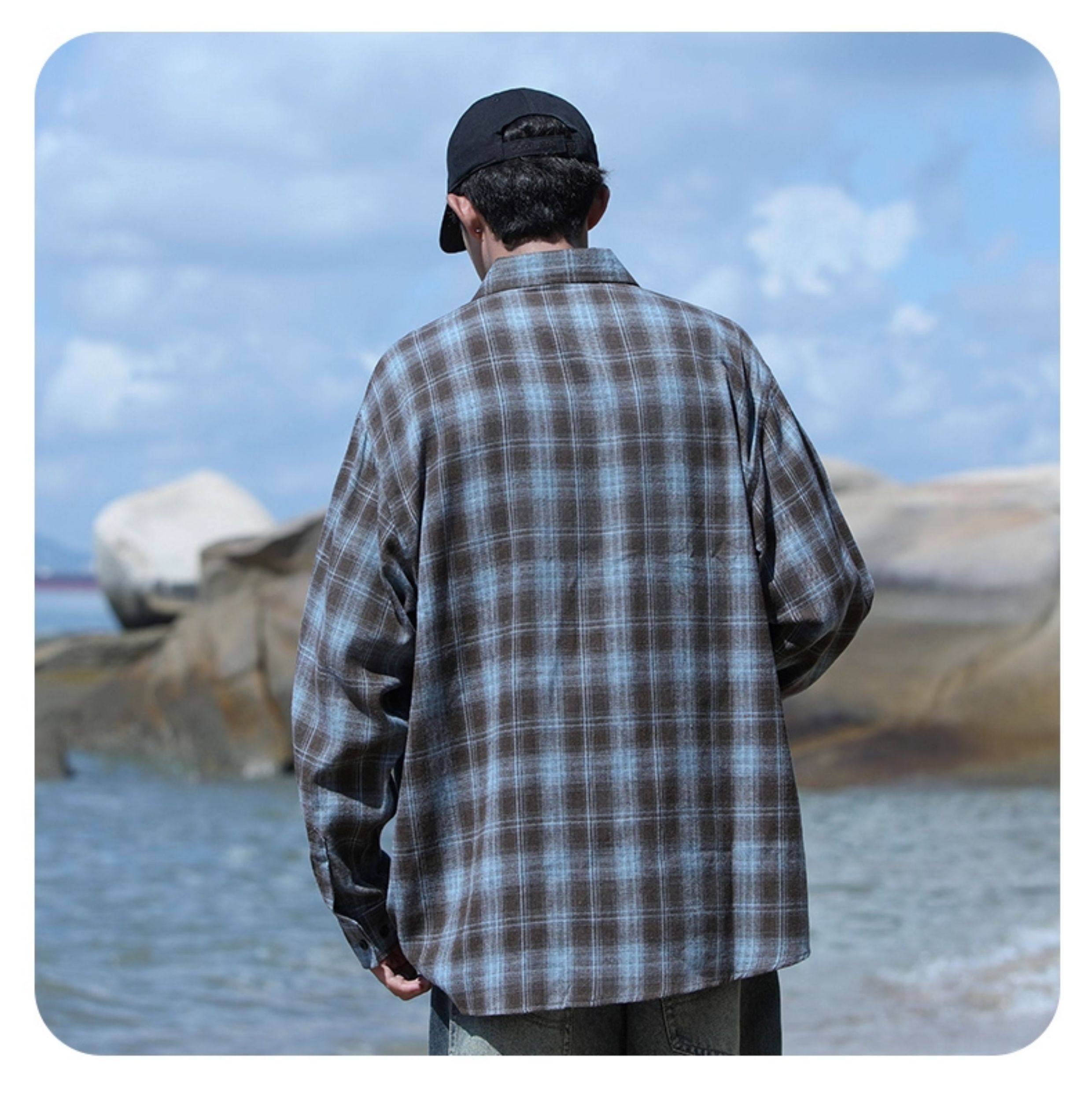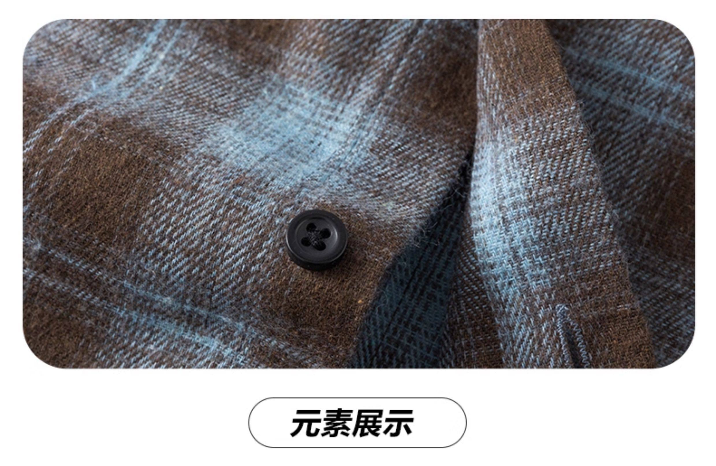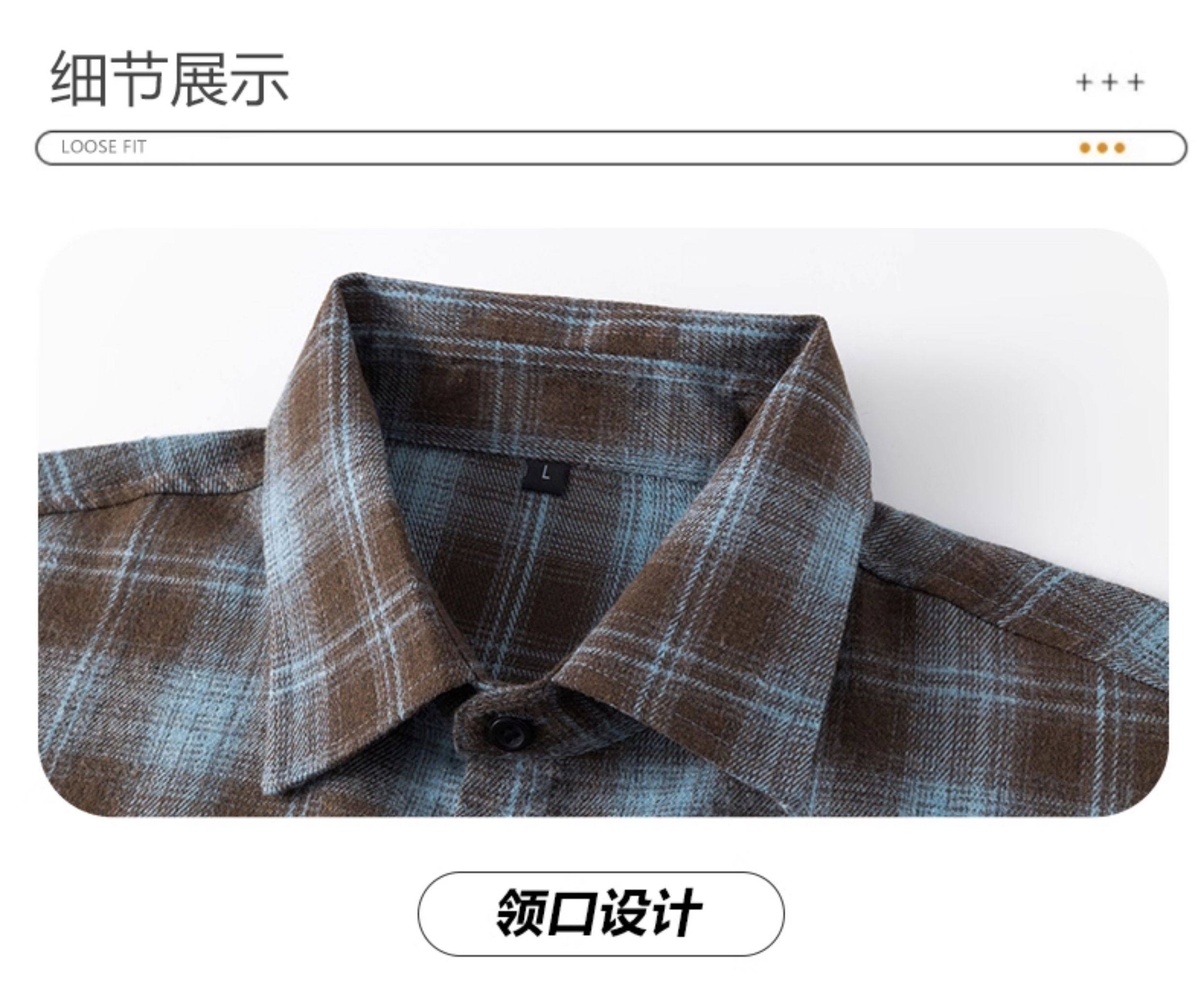 真维斯藏青色格子衬衫男长袖春秋防晒美式宽松格纹磨毛衬衣外套潮