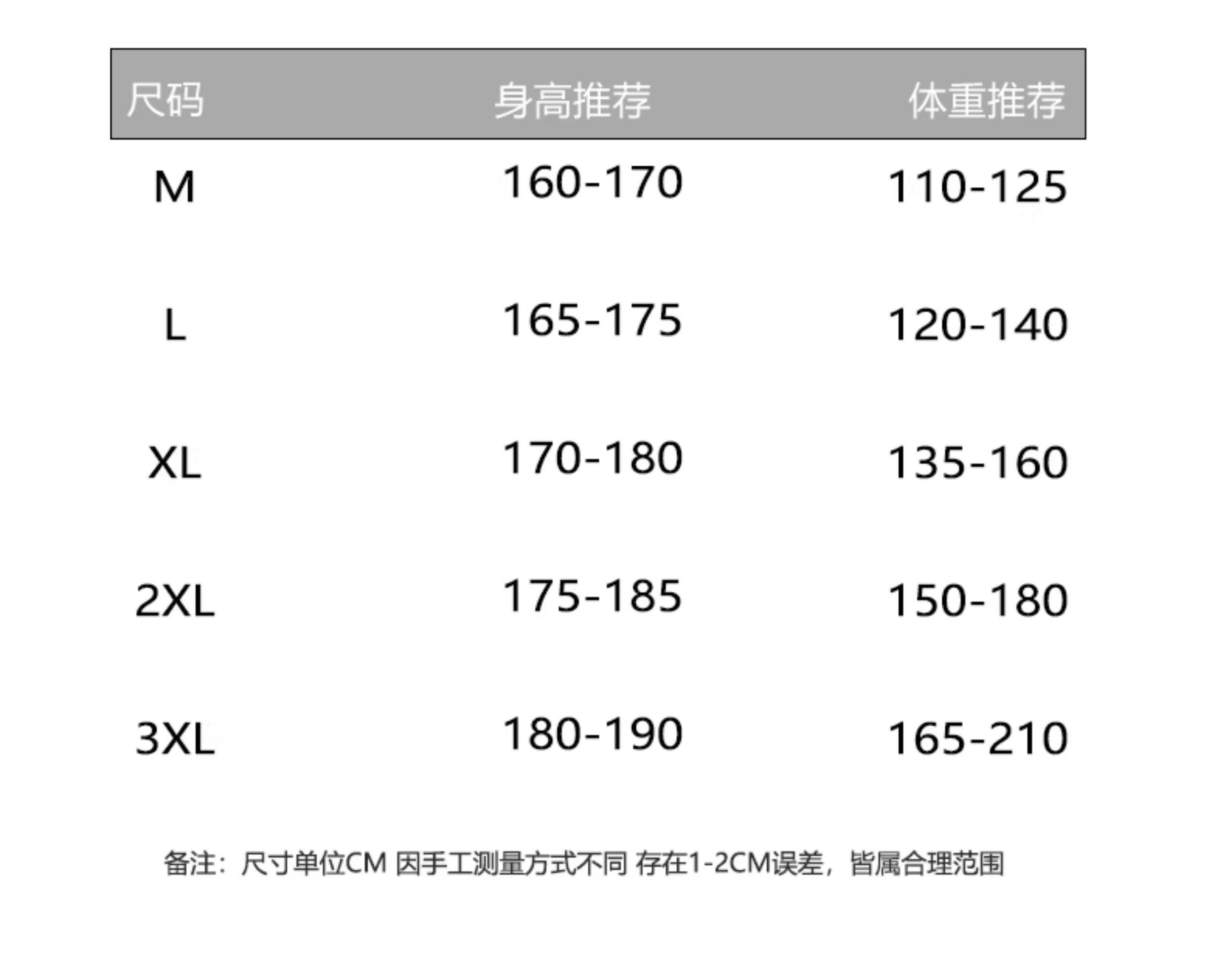 尺码 3XL,165/S,170/M,175/L,180/XL,185/2XL,4XL