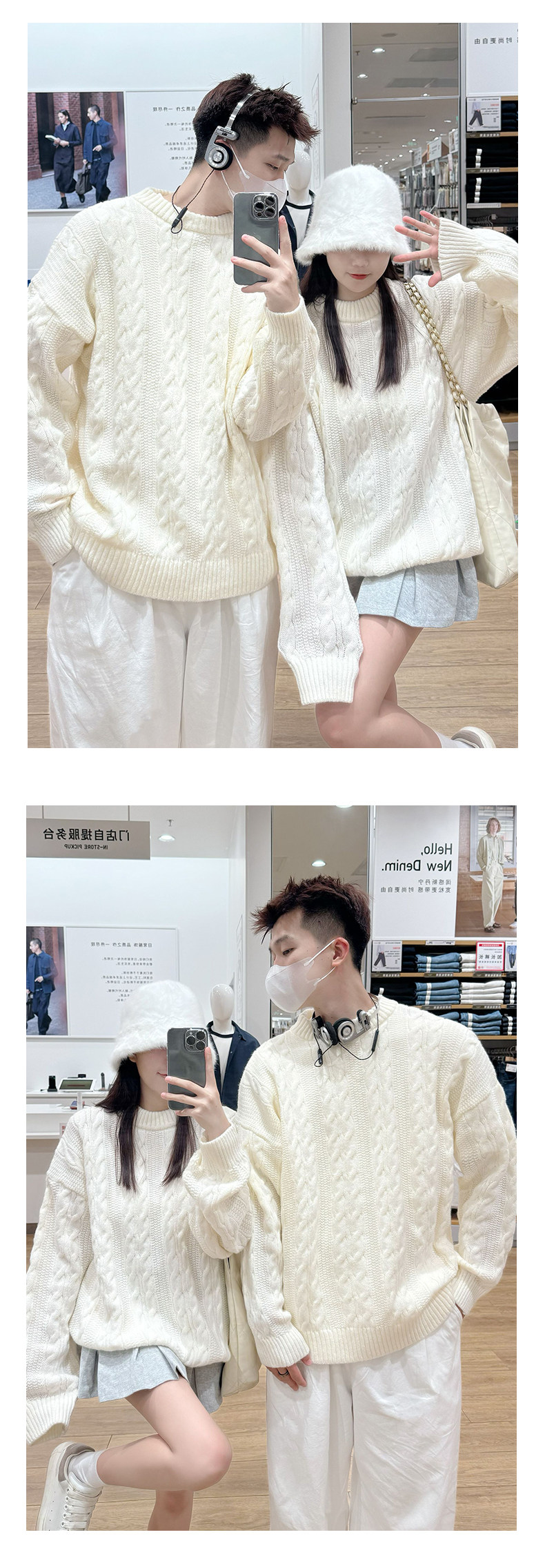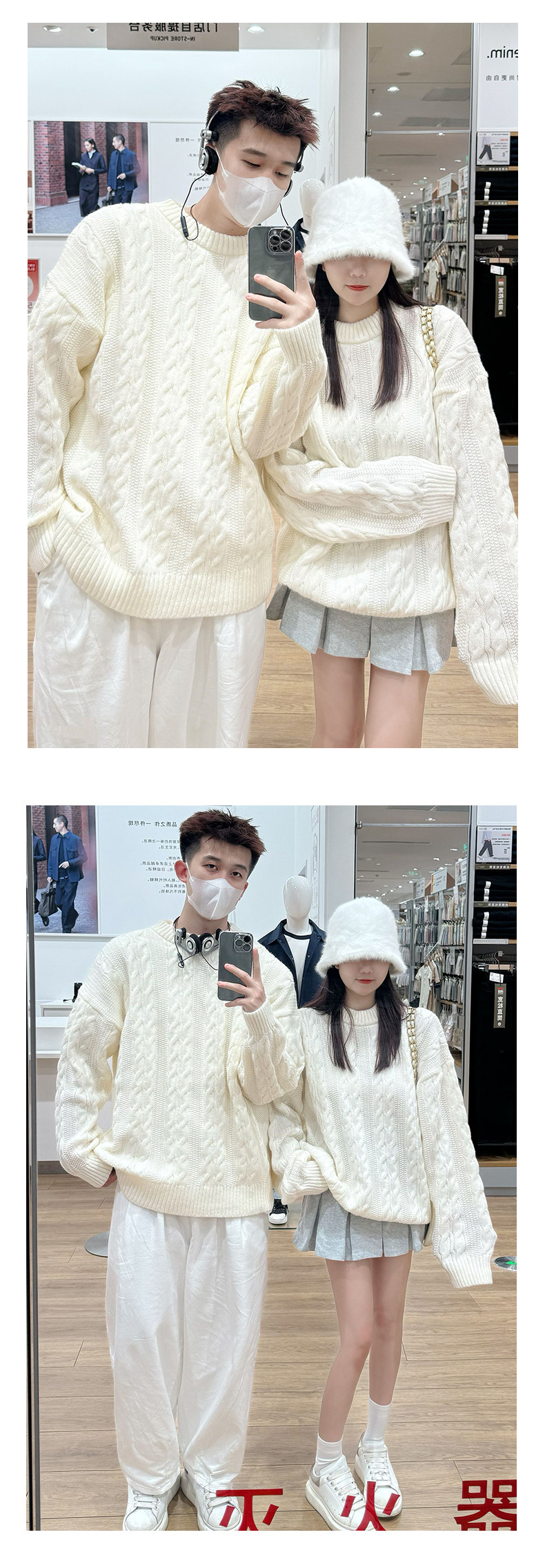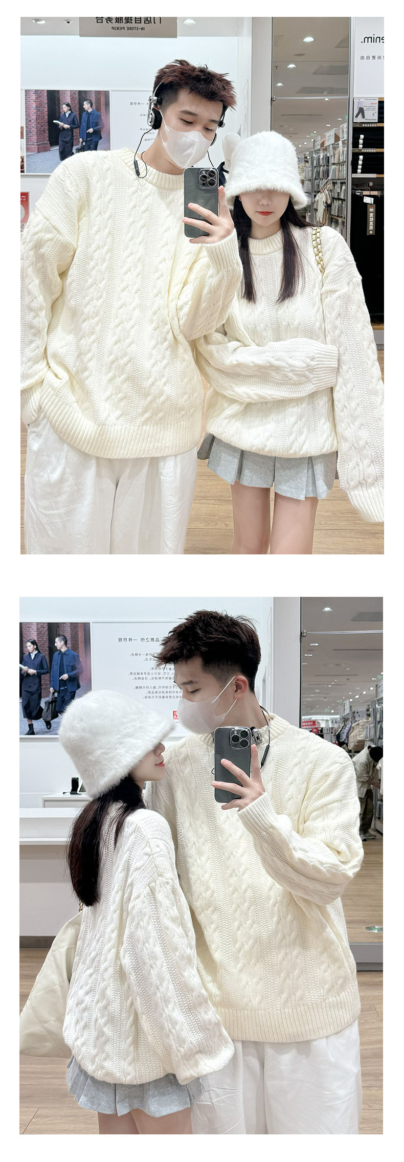 Unique Couple Outfits for Autumn and Winter 2024, White Cable Knit Sweaters for Men and Women, High-End, Lazy Style, Suitable for Marriage Registration, Thickened