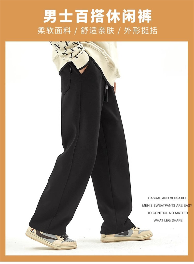Men's Light Luxury Sweatpants 2025 Autumn and Winter Wide-Leg Plus-Size Fleece-Lined Floor-Length Drape Straight-Leg Casual Long Pants