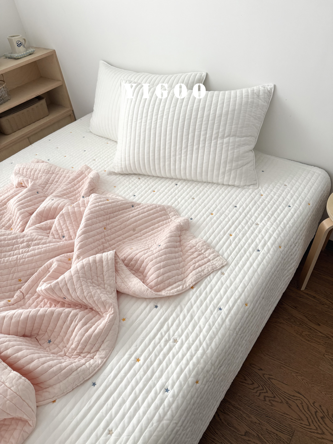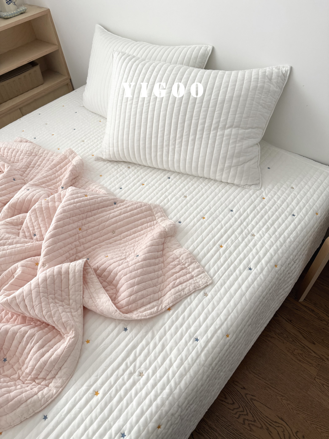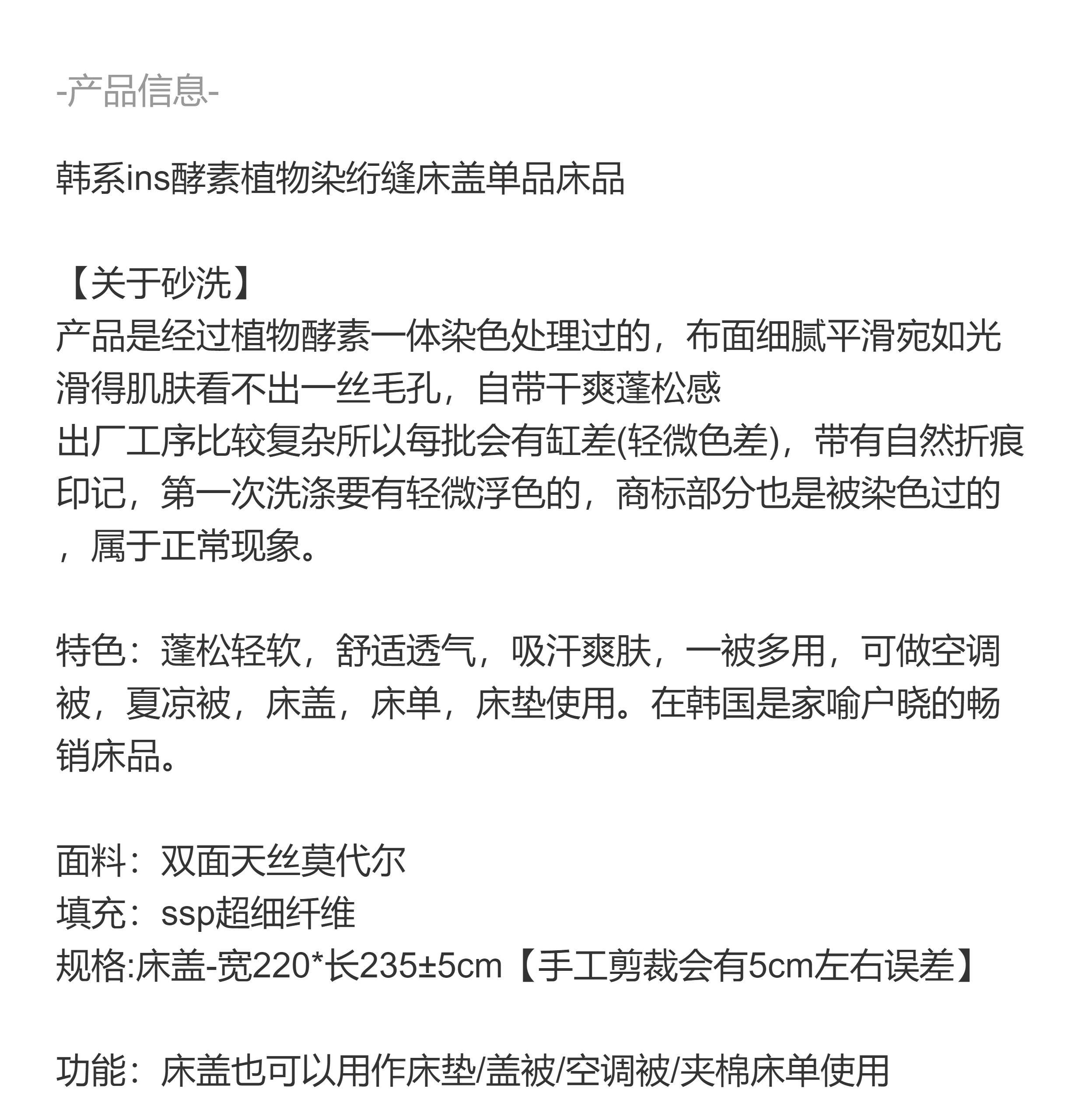 床单/床笠尺寸 单床盖-宽160*长205cm±5cm,单床盖-宽220*长235cm±5cm,同色系单夏被-220*240cm,同款枕套单只装【非图片搭配枕套】