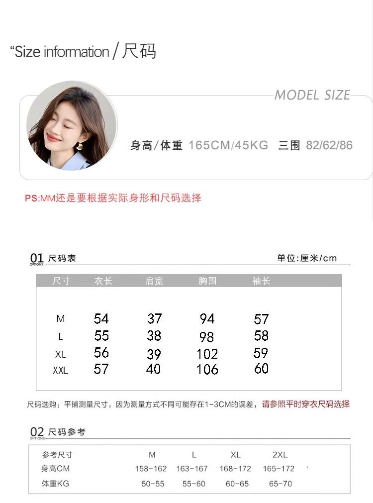 China (cm) 160-165/84-86 165-170 / 88-90 167-172 / 92-96 168-173 / 98-102 170-176 / 106-110
