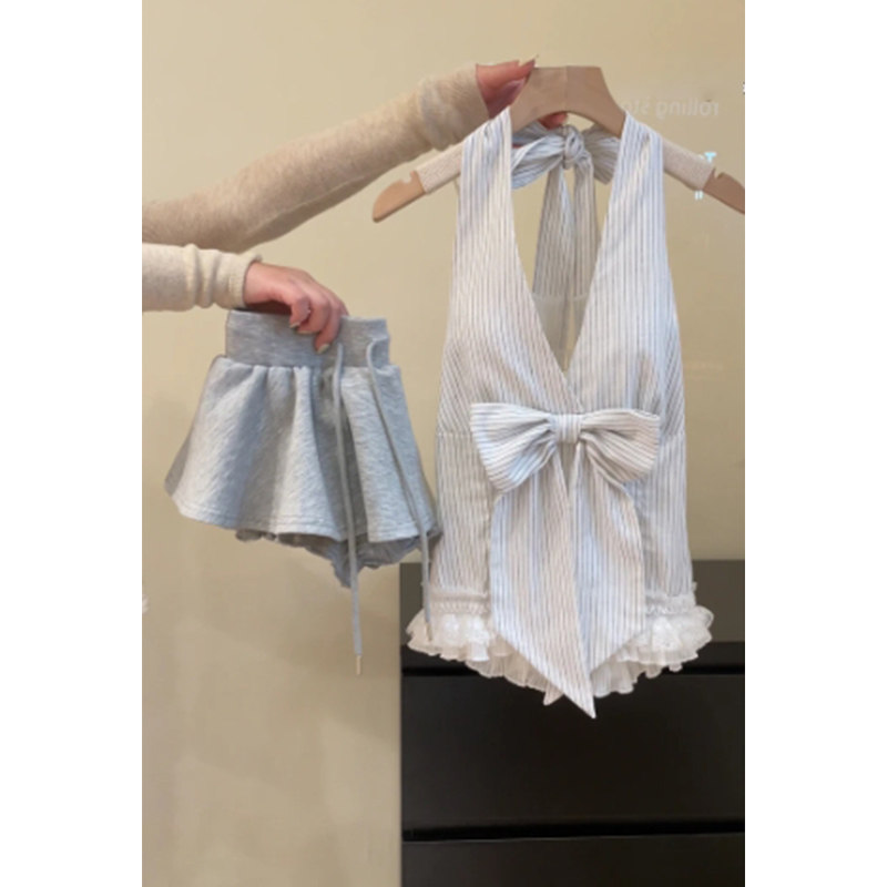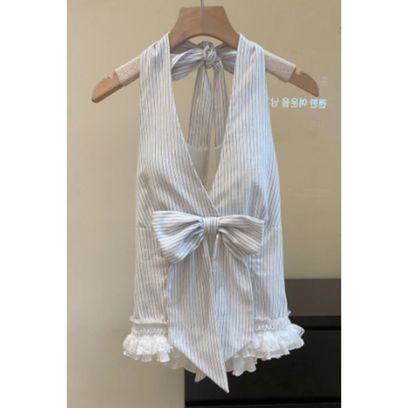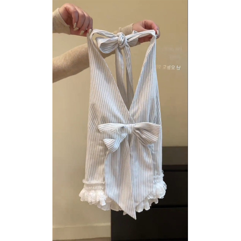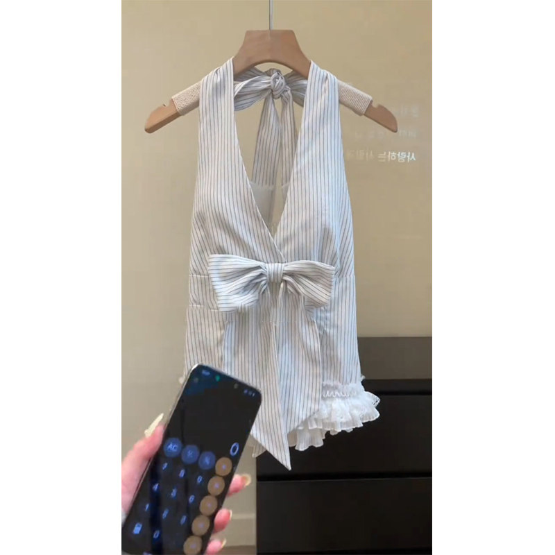 Chaleco sin mangas de encaje con cuello halter a rayas, top 2025, nuevo vestido de verano, top de tubo para vacaciones en la playa, ropa de mujer