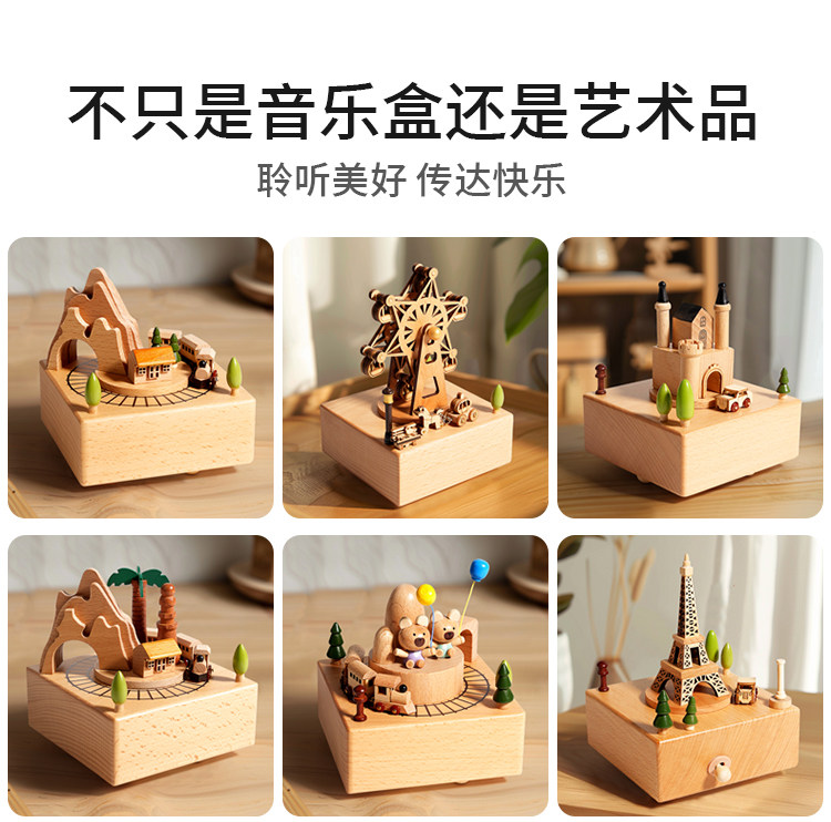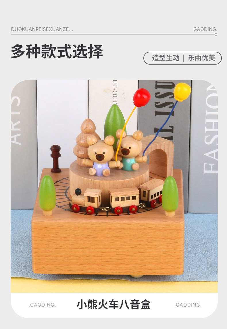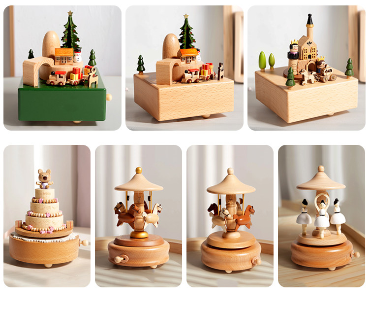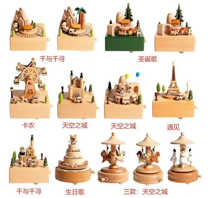 Color Classification New Alishan Little Train (Sky City),Alishan Forest Railway (Sky City),Alishan (Spirited Away),Little Bear Train (Sky City),Ballerina Girl (Castle in the Sky),Golden Star Moon Trojan (Sky City),Heart Star Carousel (Sky City),Arch Bridge Train (Sky City),Happy Castle (Sky Castle),Manual Rotating Ferris Wheel Model (Canon),Coconut Tree Cave Train Model (Spirited Away),Paris Tower Model (Meet),Bear Birthday Model (Birthday Song),New Bear (Sky City),Princess and Prince Style (Spirited Away),Green Christmas Tree Model (Christmas Song),Natural Wood Christmas Tree (Christmas Song),Luxurious Santa Claus Model (Christmas Song),Rechargeable Model (Comes with Card and Gift Bag),Simple Pig (with Music) (Castle in the Sky),Castle Pig (with Music) (Castle in the Sky)